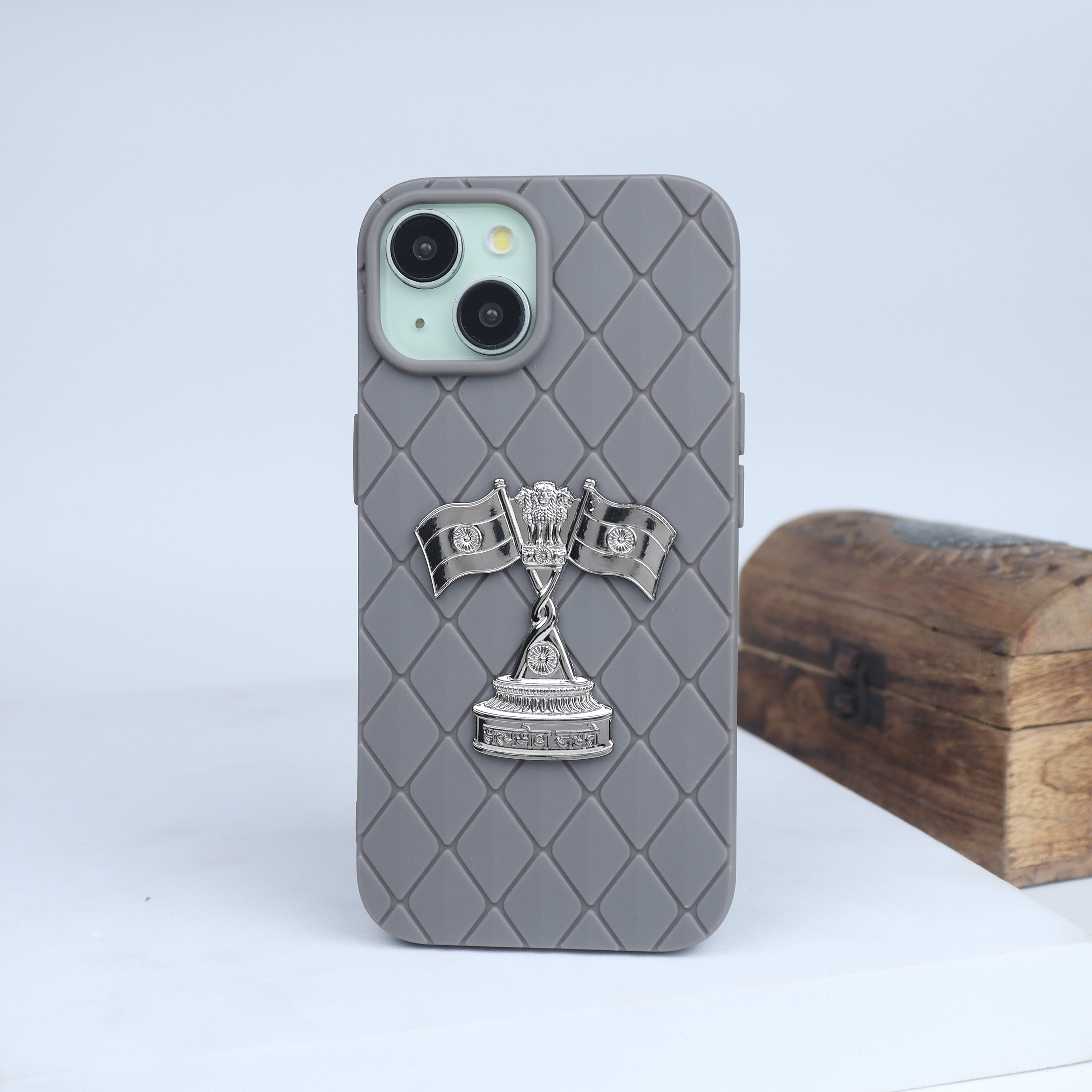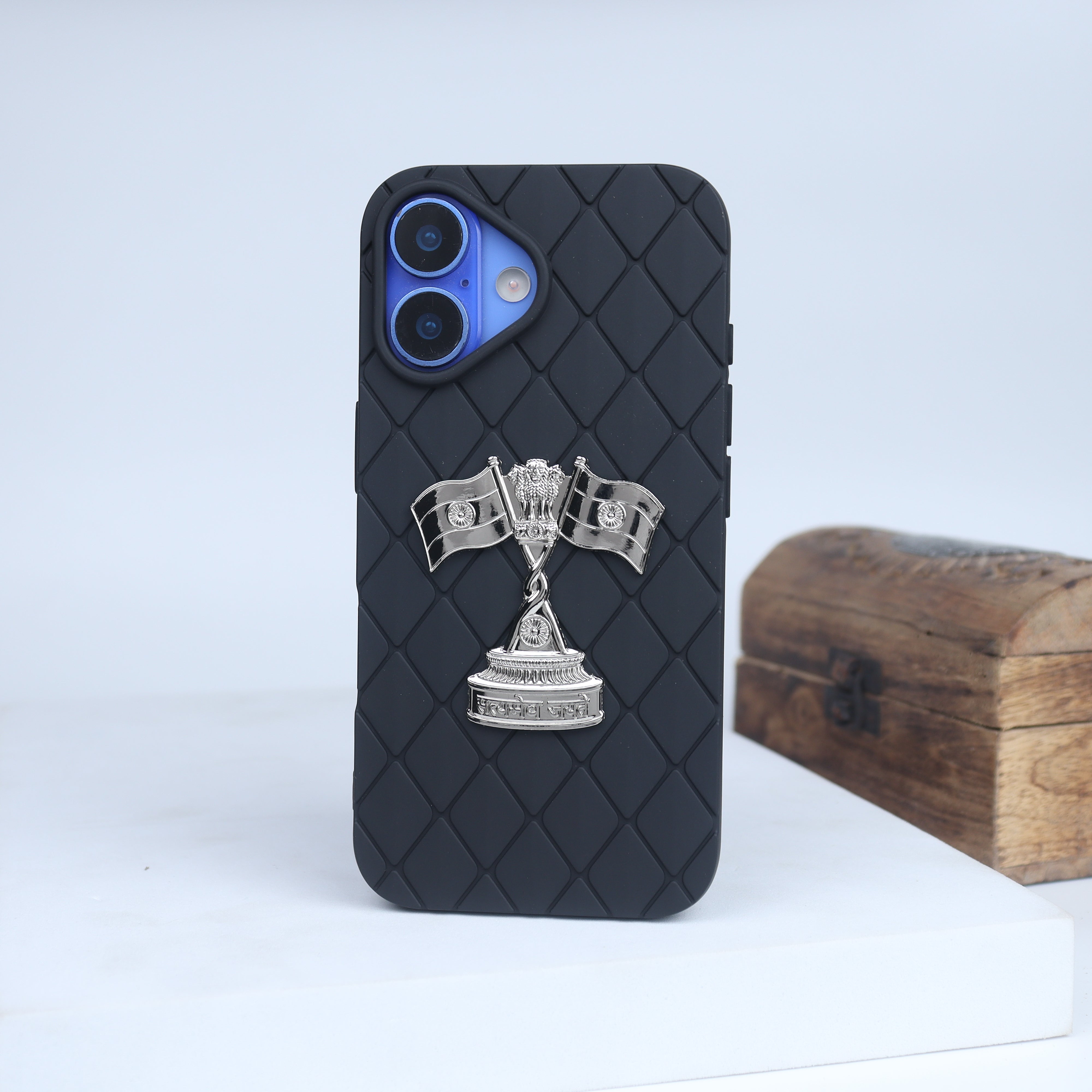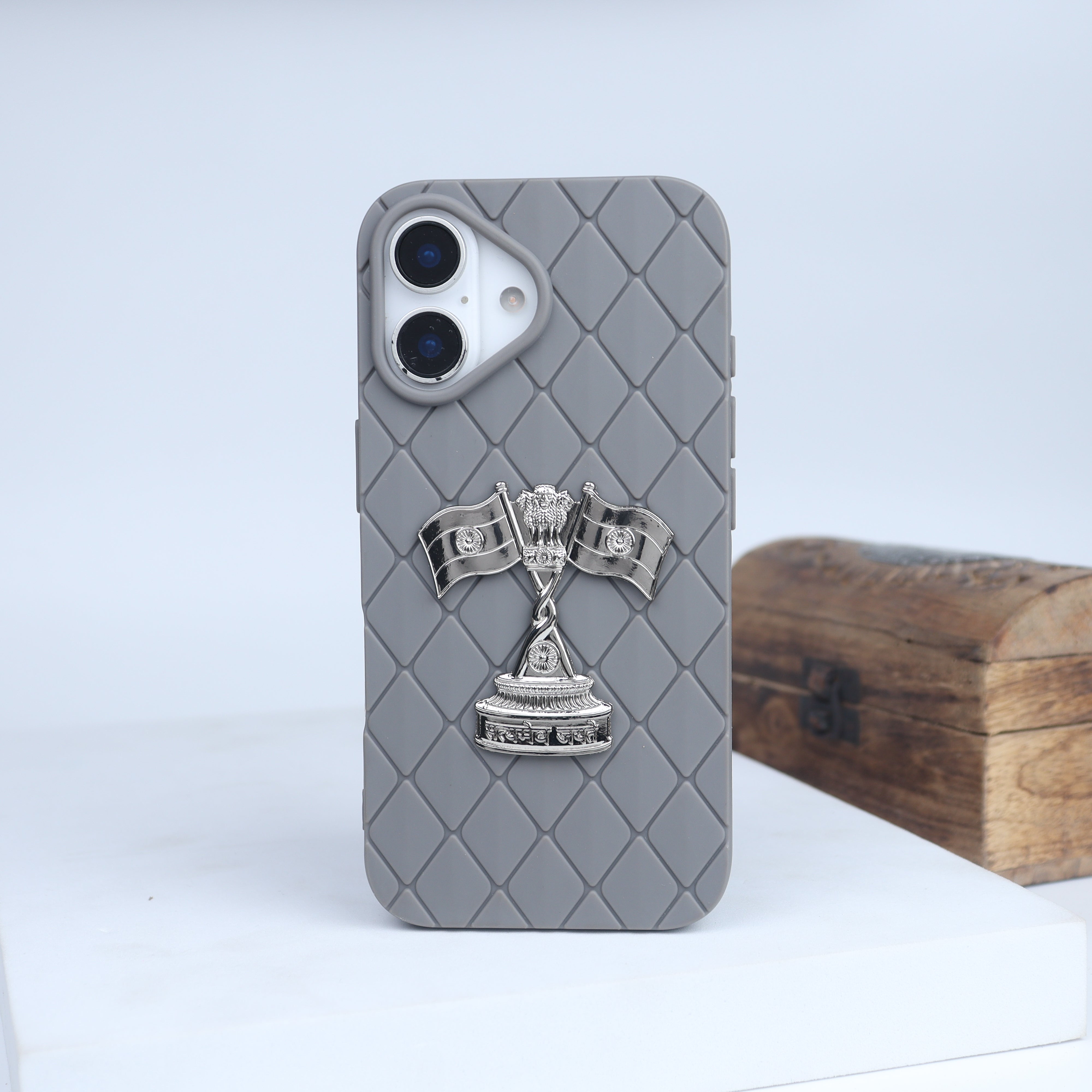 Stand out with confidence and protect your phone in style. This Nyay Stambh Rhombus Design Case - iPhone is crafted with a modern textured finish and features a bold metallic Nyay Stambh symbolizing justice and authority. Perfect for advocates, lawyers, and legal professionals, this case blends sophistication with durability to complement your professional lifestyle.