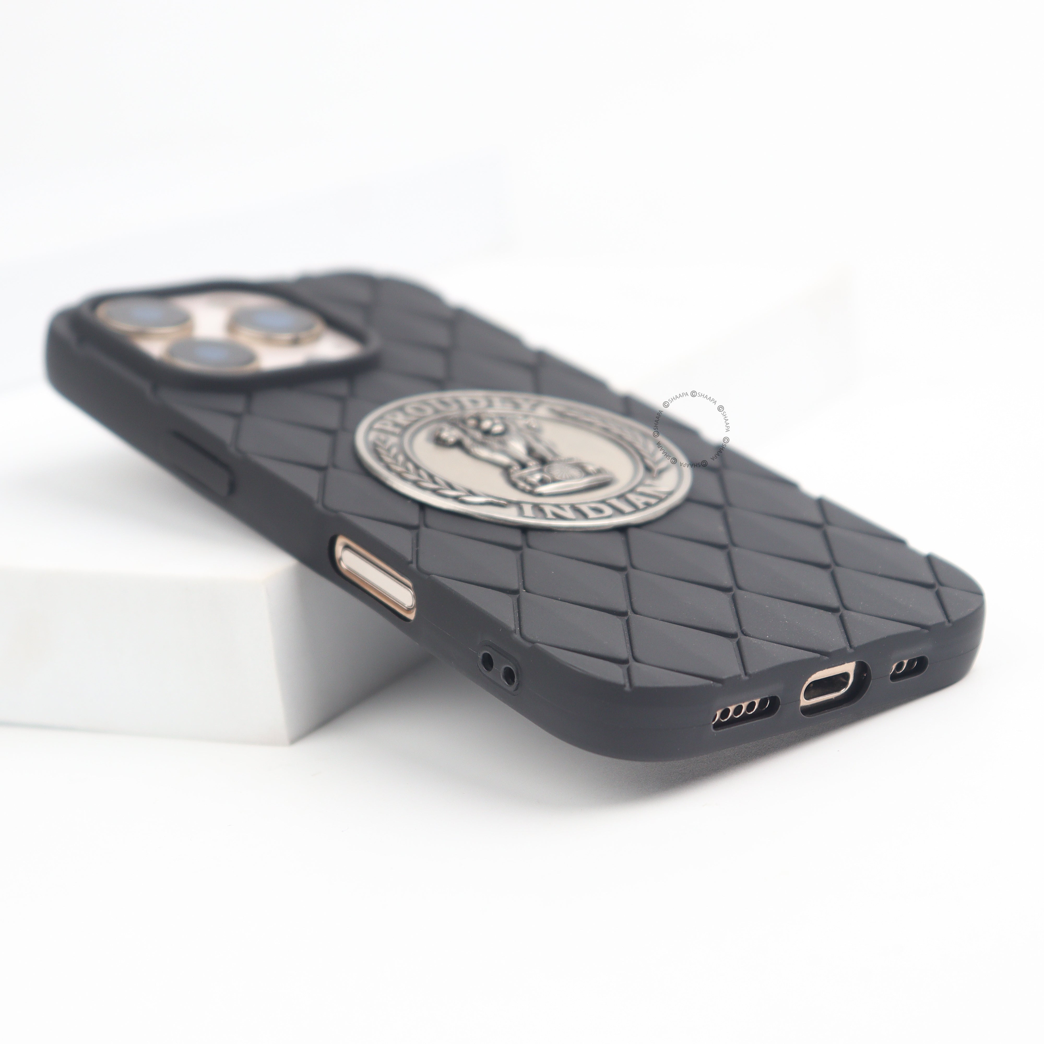 This phone case features an artistic representation of the National Emblem of India. It is not an official government product.
