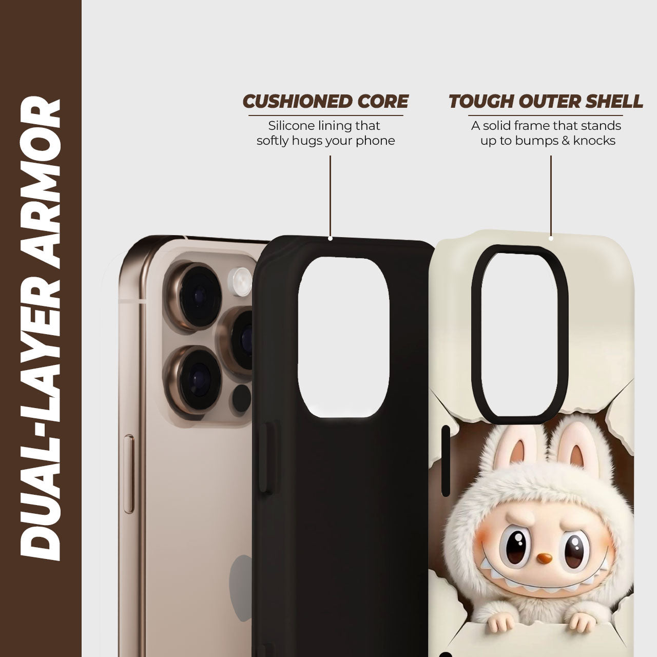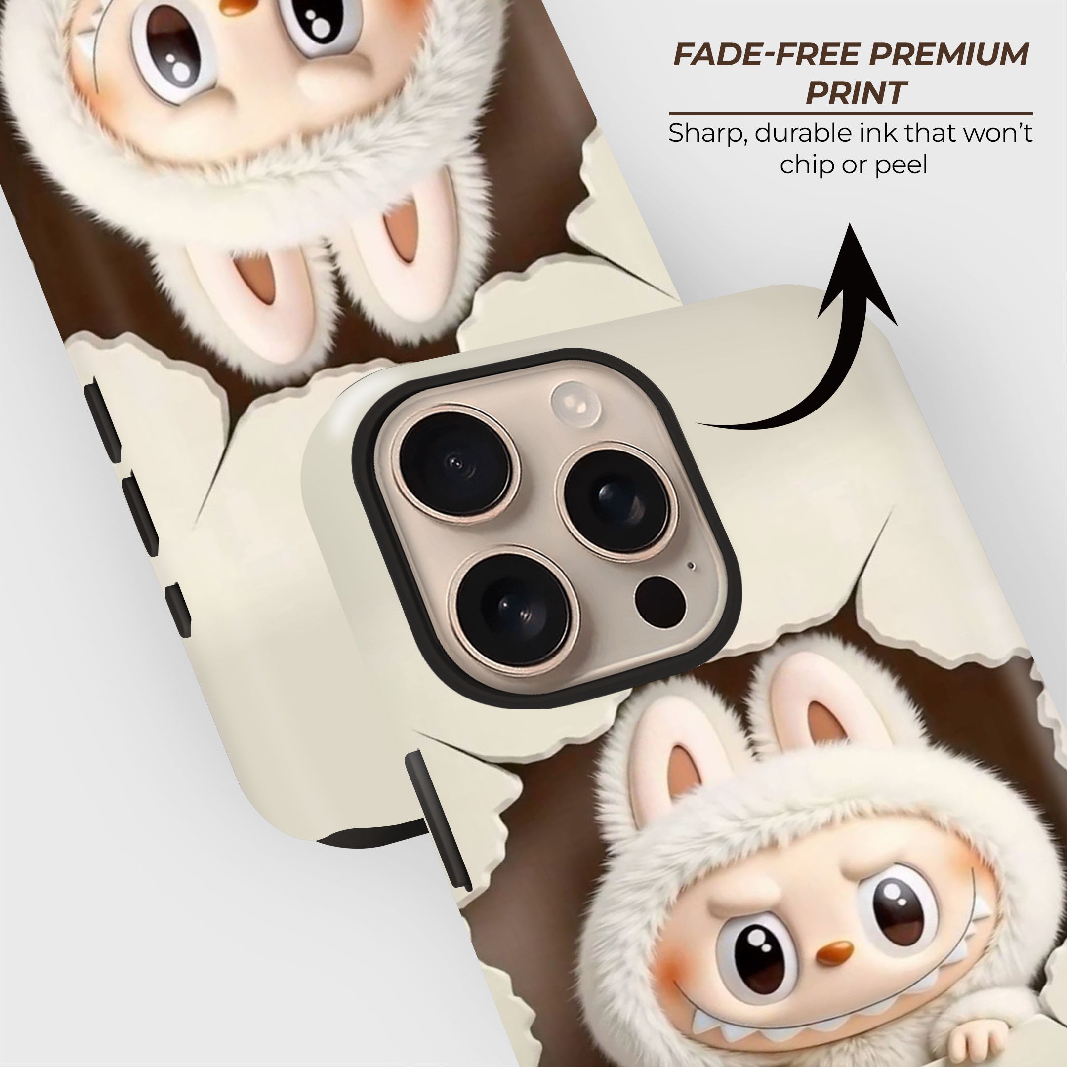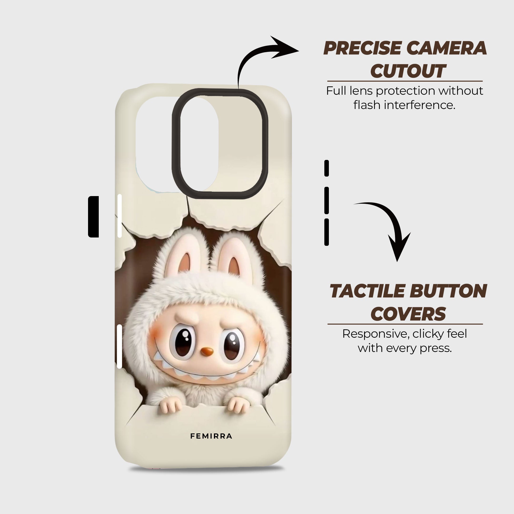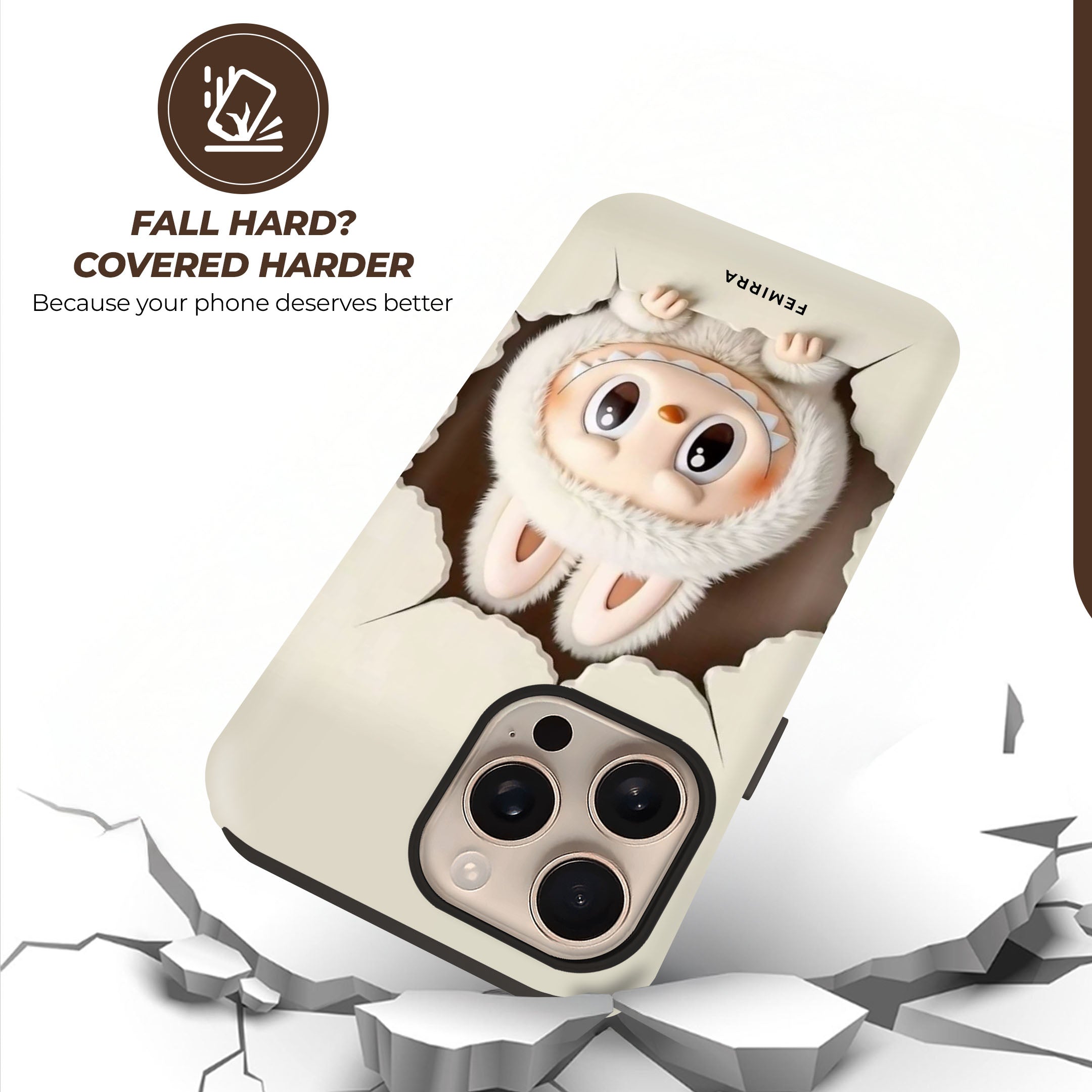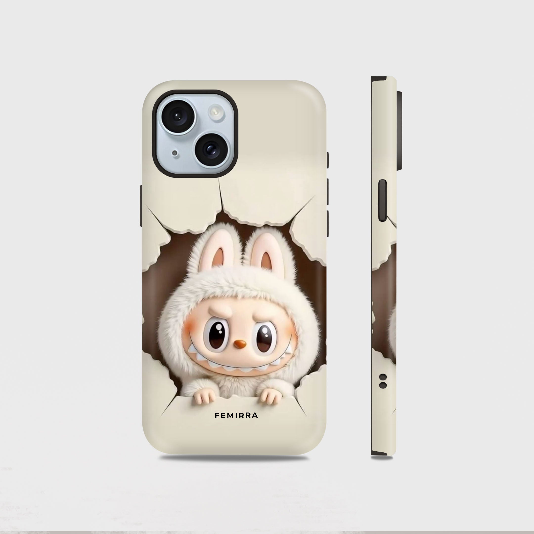 Say hello to chaos in the cutest form! The Snarkee Case by FEMIRRA features a cheeky cartoon bunny in a fluffy hood peeking out of a cracked wall. With its mischievous grin and playful 3D illusion design, this case brings humor, attitude, and standout style to your everyday tech.