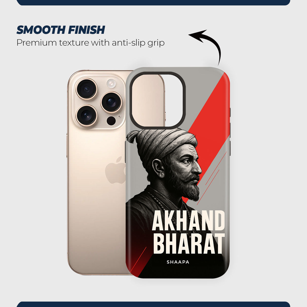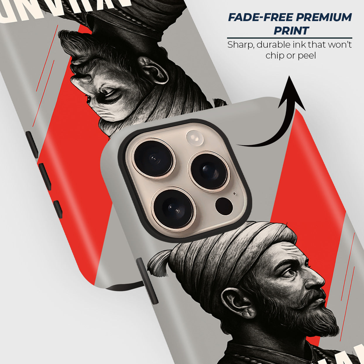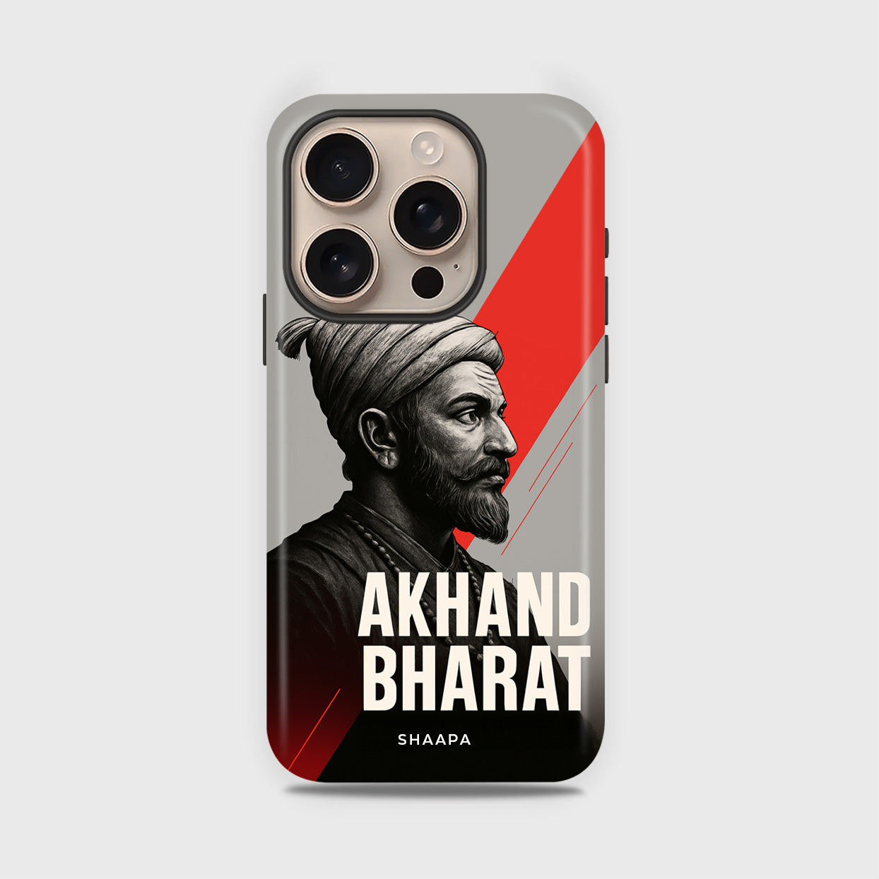 Celebrate the spirit of unity, courage, and heritage with this striking phone case featuring a detailed portrait of Chhatrapati Shivaji Maharaj, one of India’s greatest warrior kings. Set against a bold red and grey background, the design highlights strength, leadership, and the vision of an undivided India. The bold text “Akhanda Bharat” adds patriotic pride, making this case more than just protection—it’s a symbol of resilience and national identity