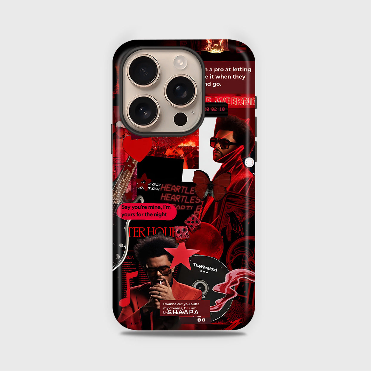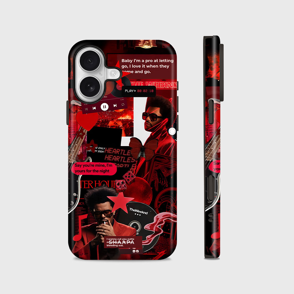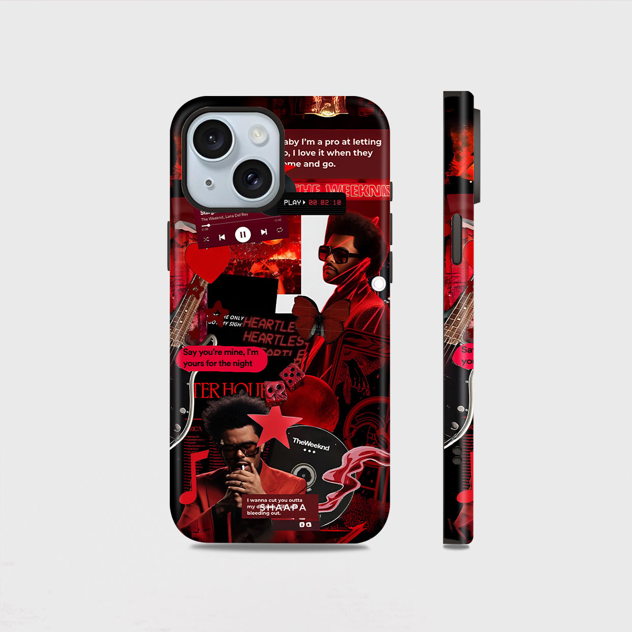 Turn up the aesthetic with the Weeknd case, inspired by The Weeknd’s iconic era. Featuring a bold red collage of his signature looks, lyrics, and visuals, this case radiates late-night energy, passion, and artistry. A must-have for true fans who live for the music and the mood.