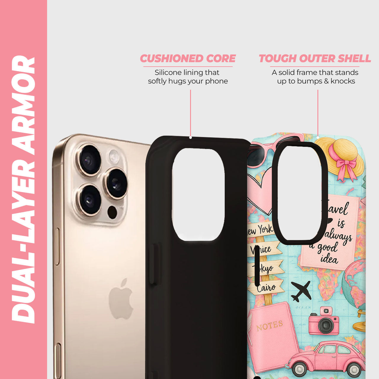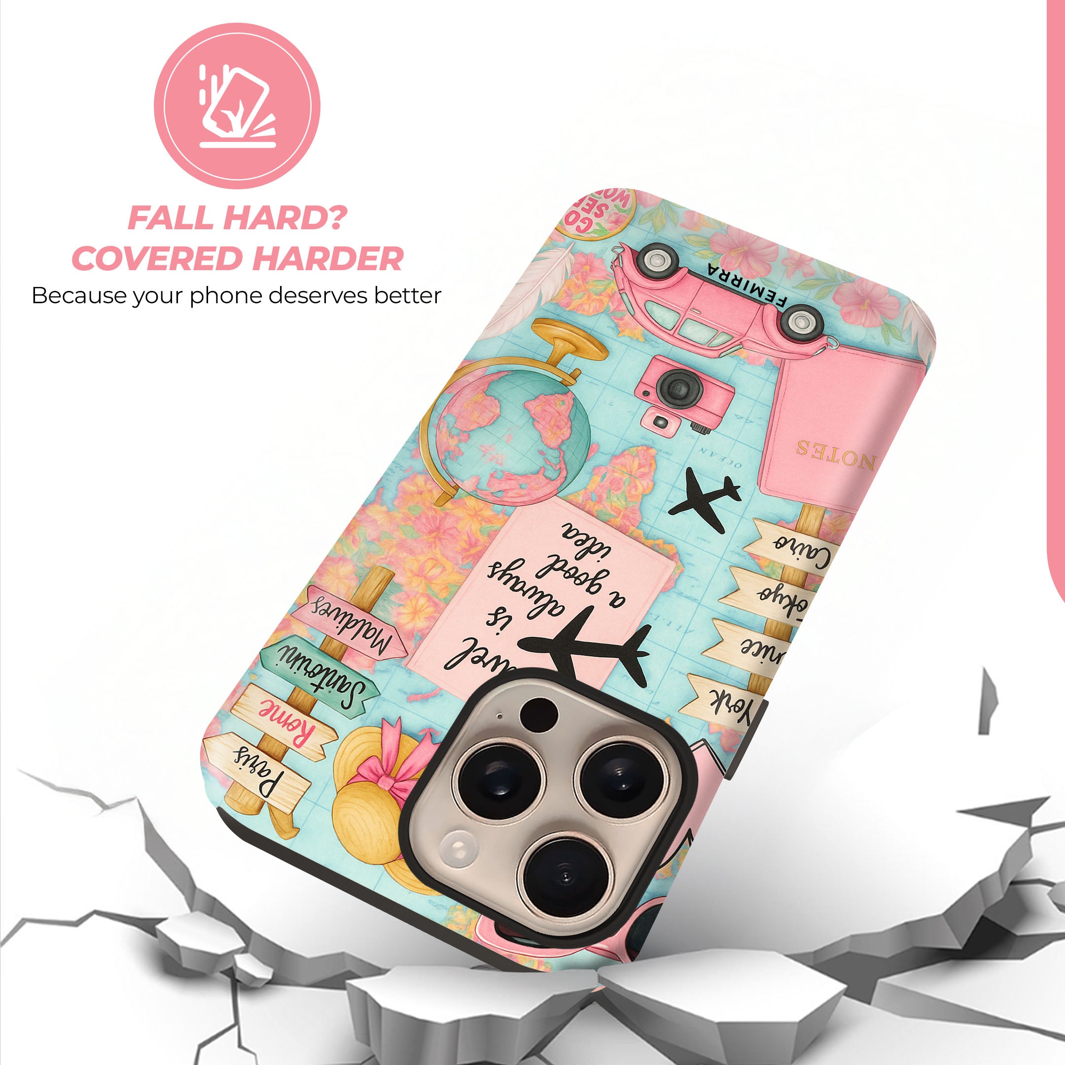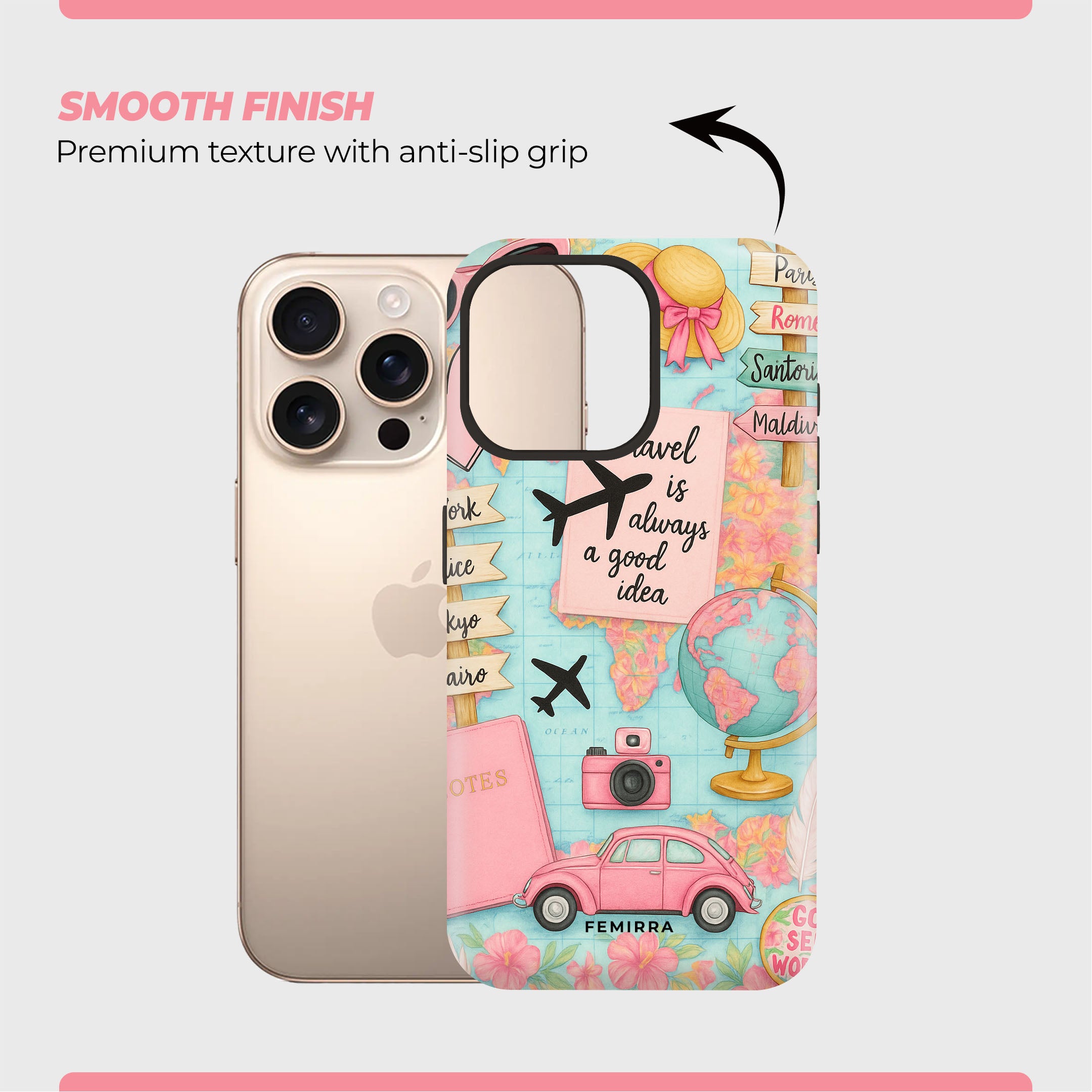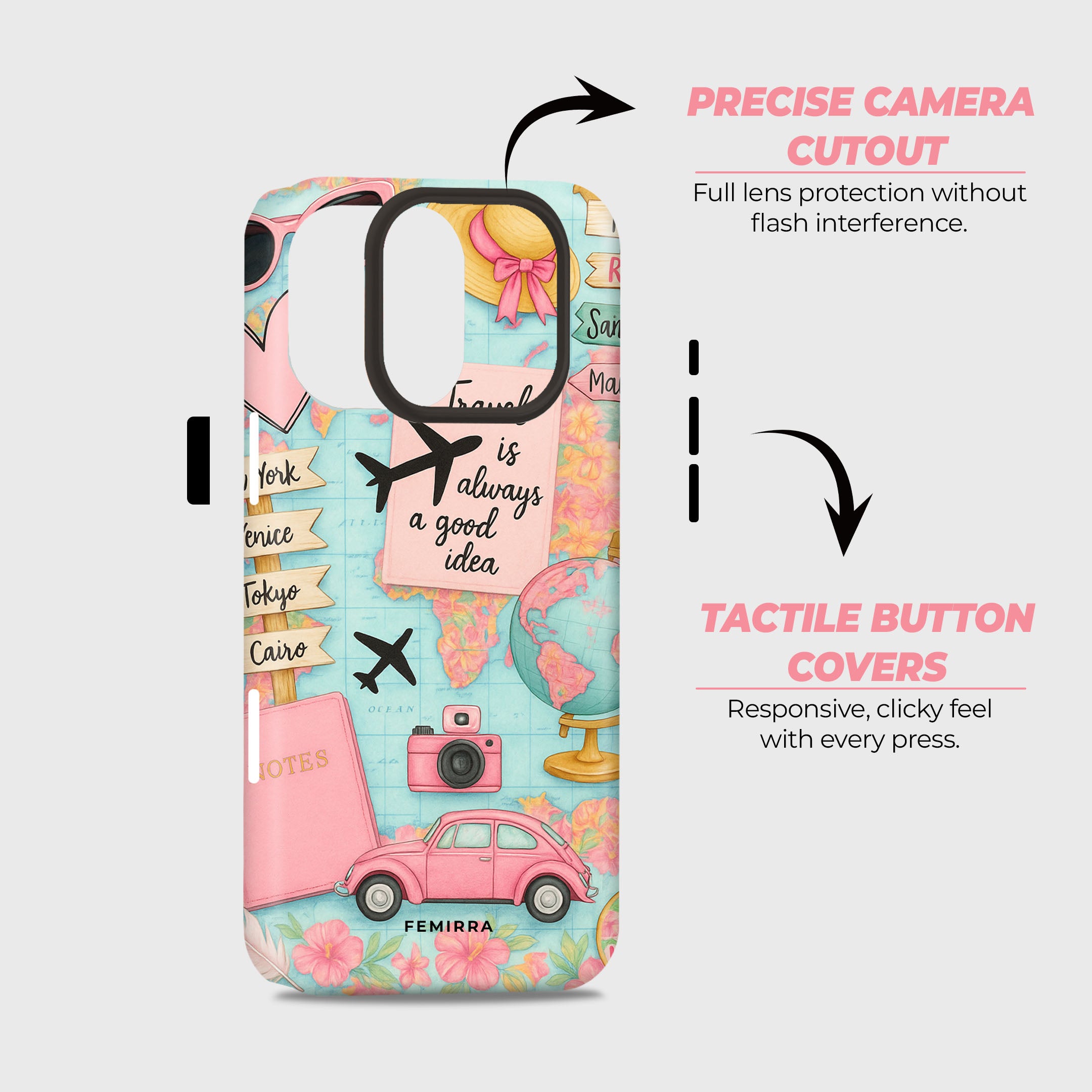 Fuel your wanderlust with the Flynaughty Case – a vibrant celebration of every girl’s love for passports, planes, and pink-tinted adventures.