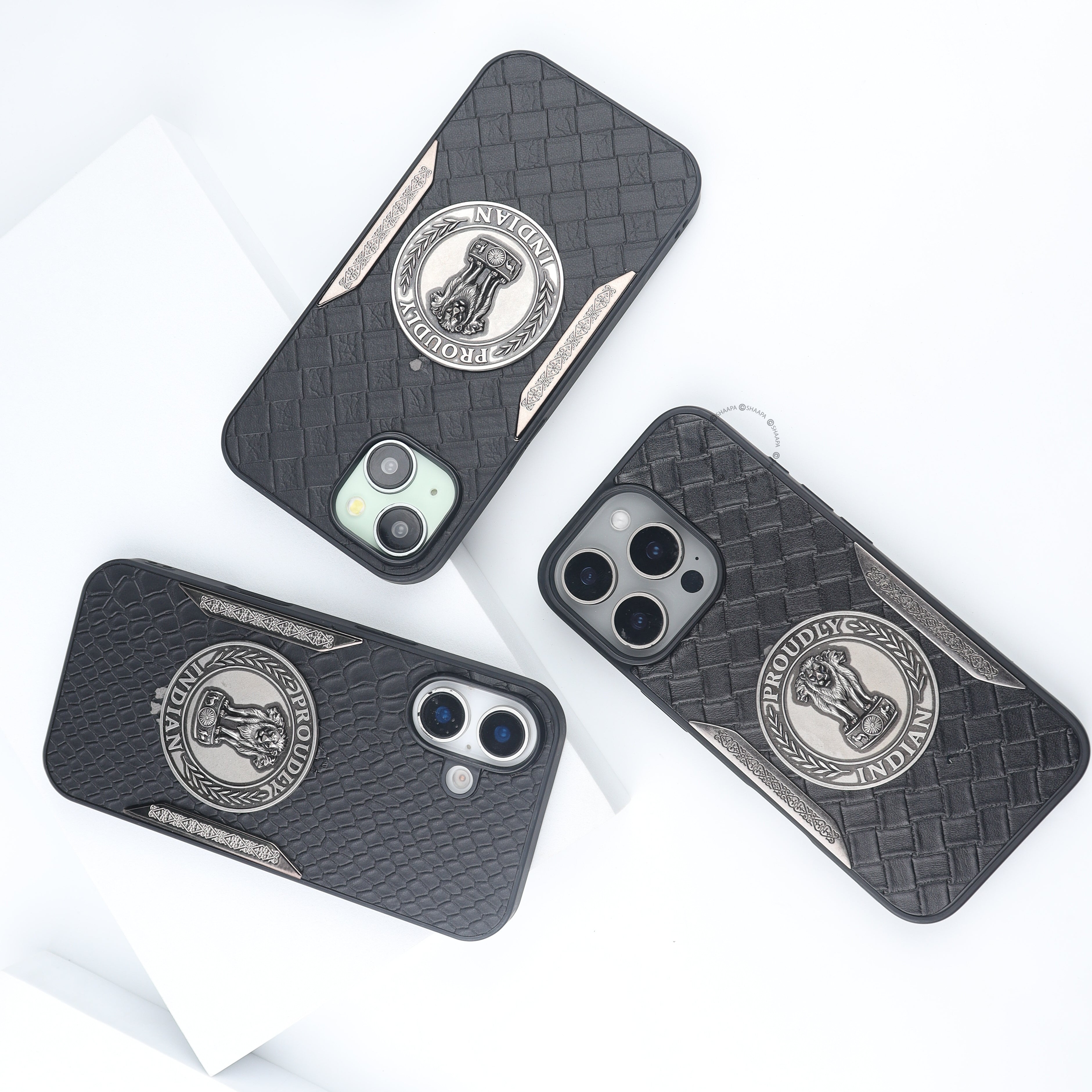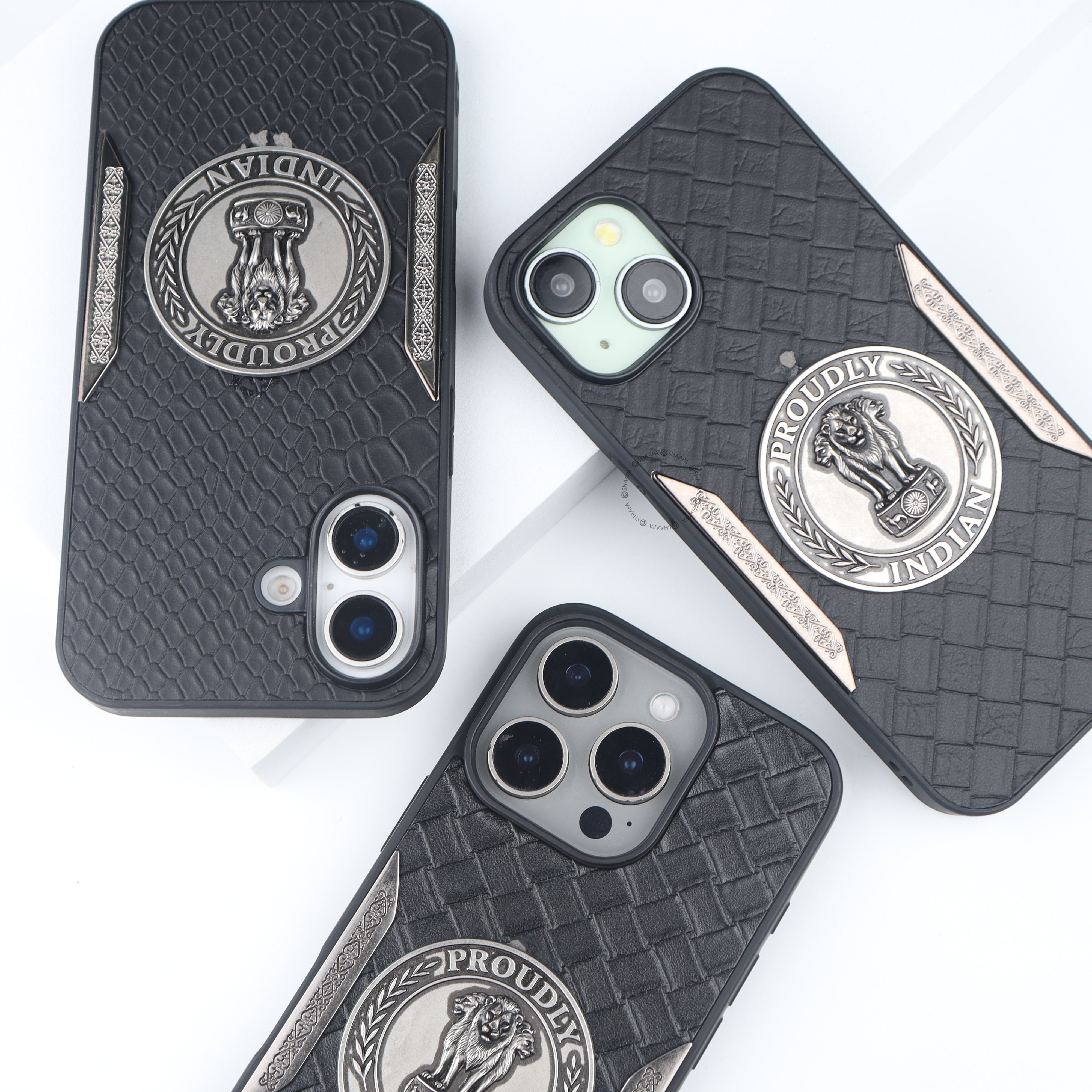 Showcase your patriotism with unmatched style and protection. The Proudly Indian Textured Leather Case combines the national emblem with a luxurious crocodile-textured finish, perfect for those who value strength, legacy, and elegance.