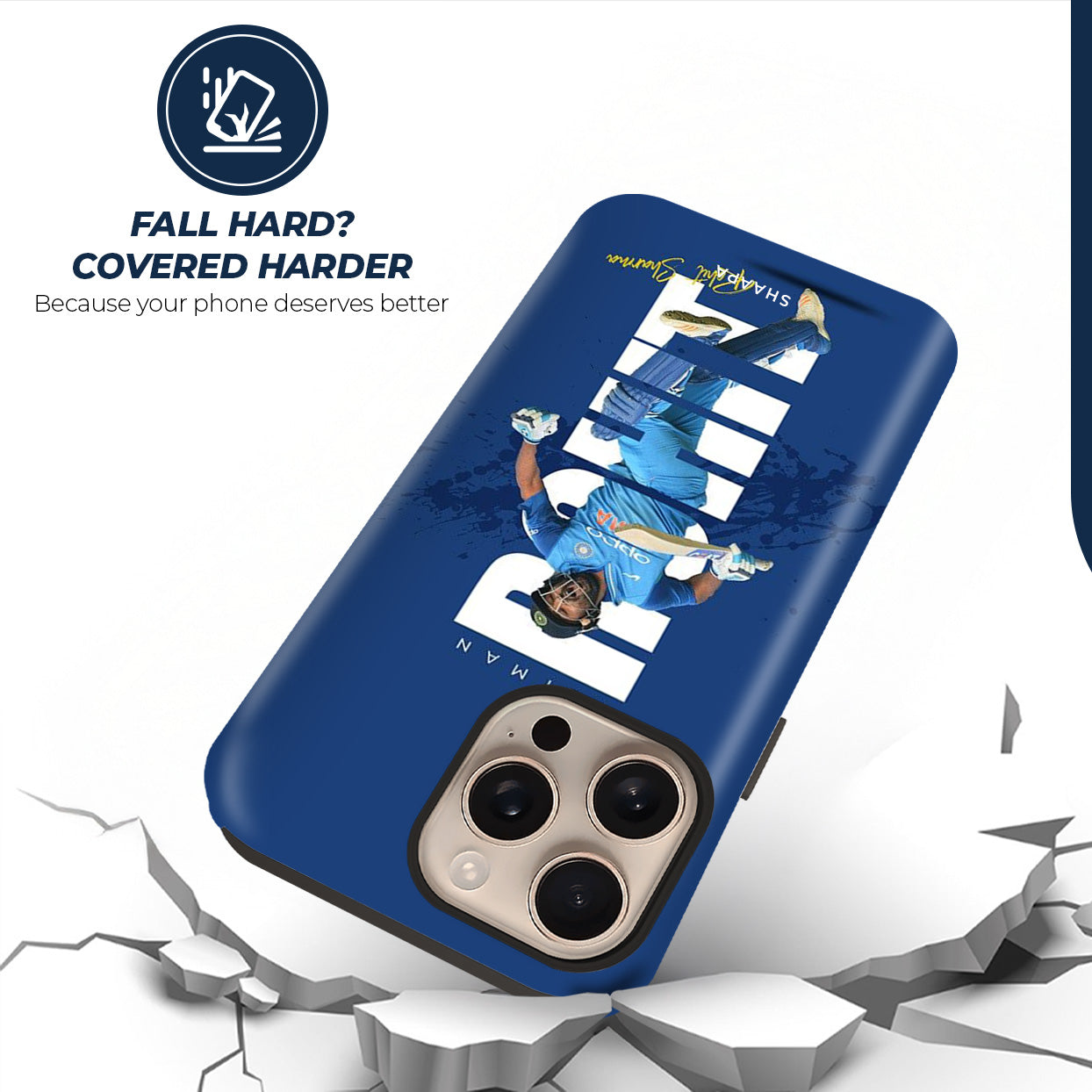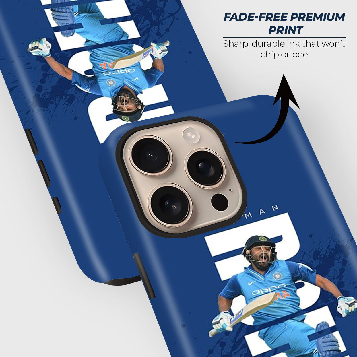 Celebrate the brilliance of the “Hitman” with this bold and stylish phone case featuring Rohit Sharma in full action. Dressed in the iconic Indian blue jersey, the dynamic design captures his explosive batting power and fearless attitude on the field.