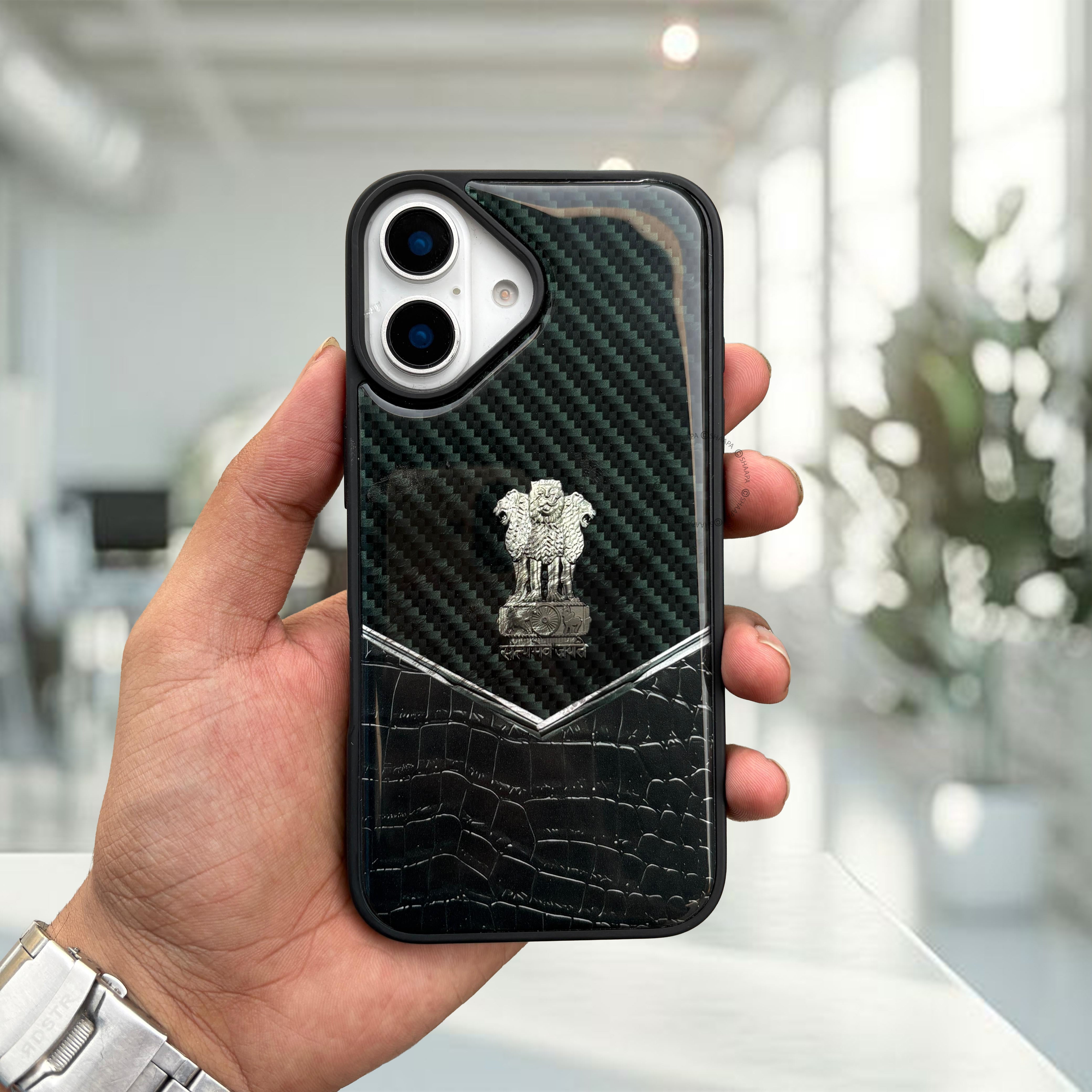 Carry a symbol of strength and integrity wherever you go with the Satyamev Jayate Elite Leather Case. Featuring India’s revered national emblem and the powerful words Satyamev Jayate, this case is crafted for those who lead with conviction and honor. The smooth, leather-textured finish paired with metallic accents makes it a premium tribute to India’s timeless ideals.