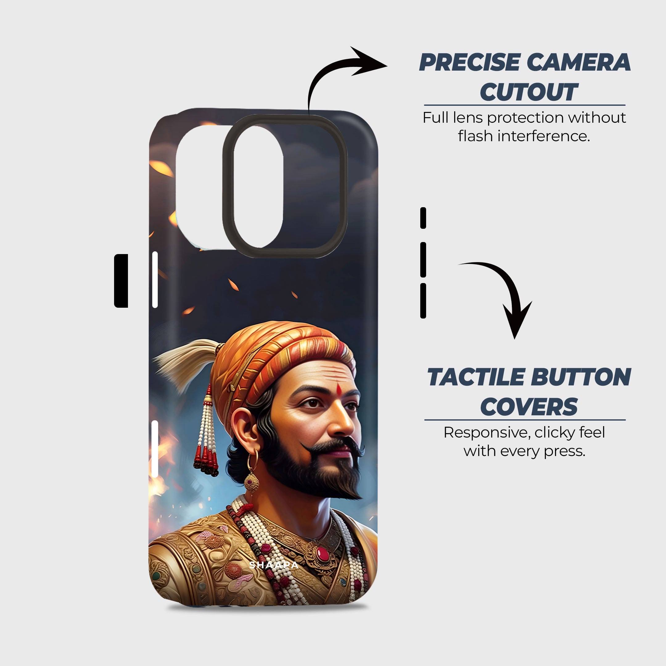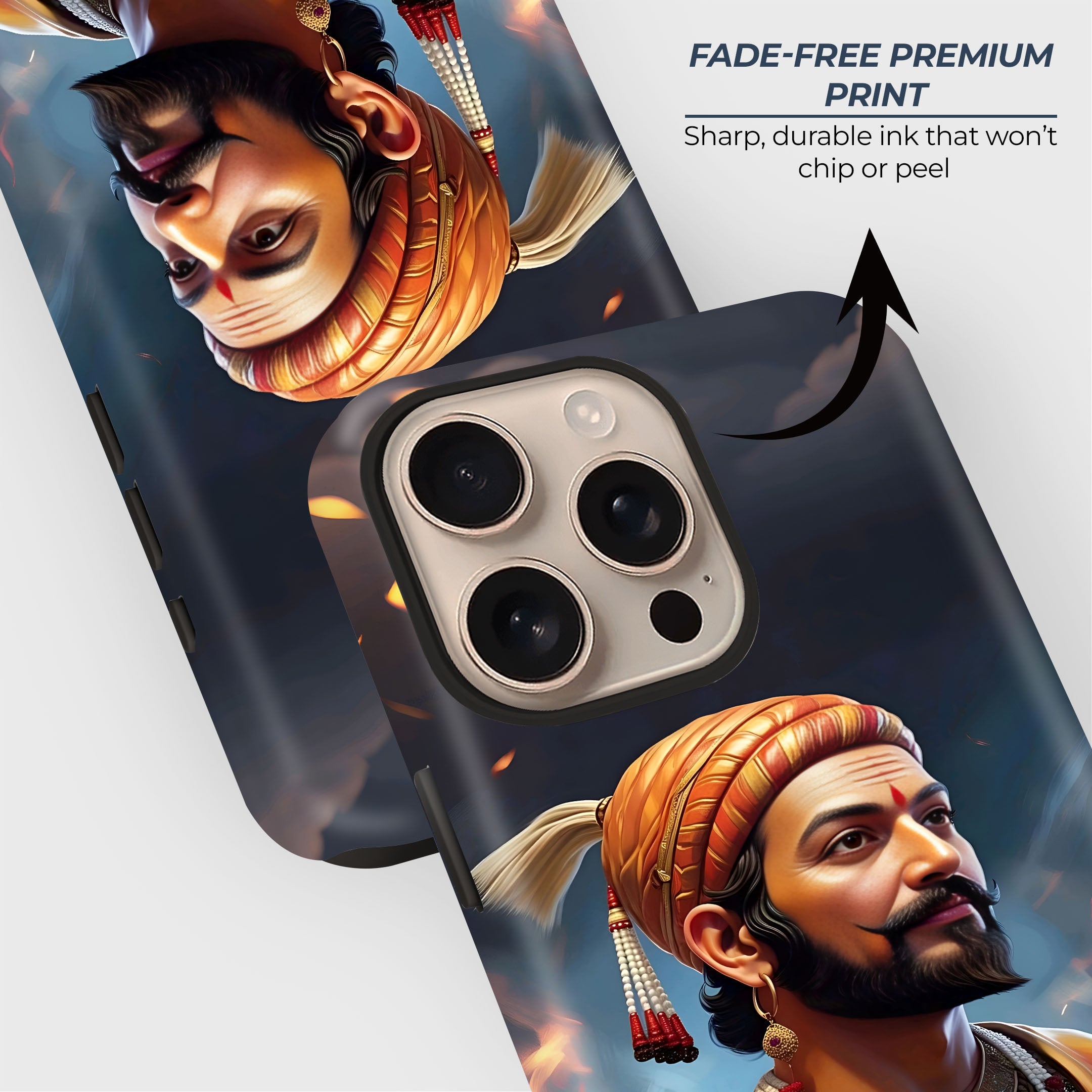 Bring valor to your pocket with this stunning mobile cover featuring the legendary Shivaji Maharaj. A tribute to the Maratha warrior king, this design captures his regal charisma and fierce spirit in vibrant detail.