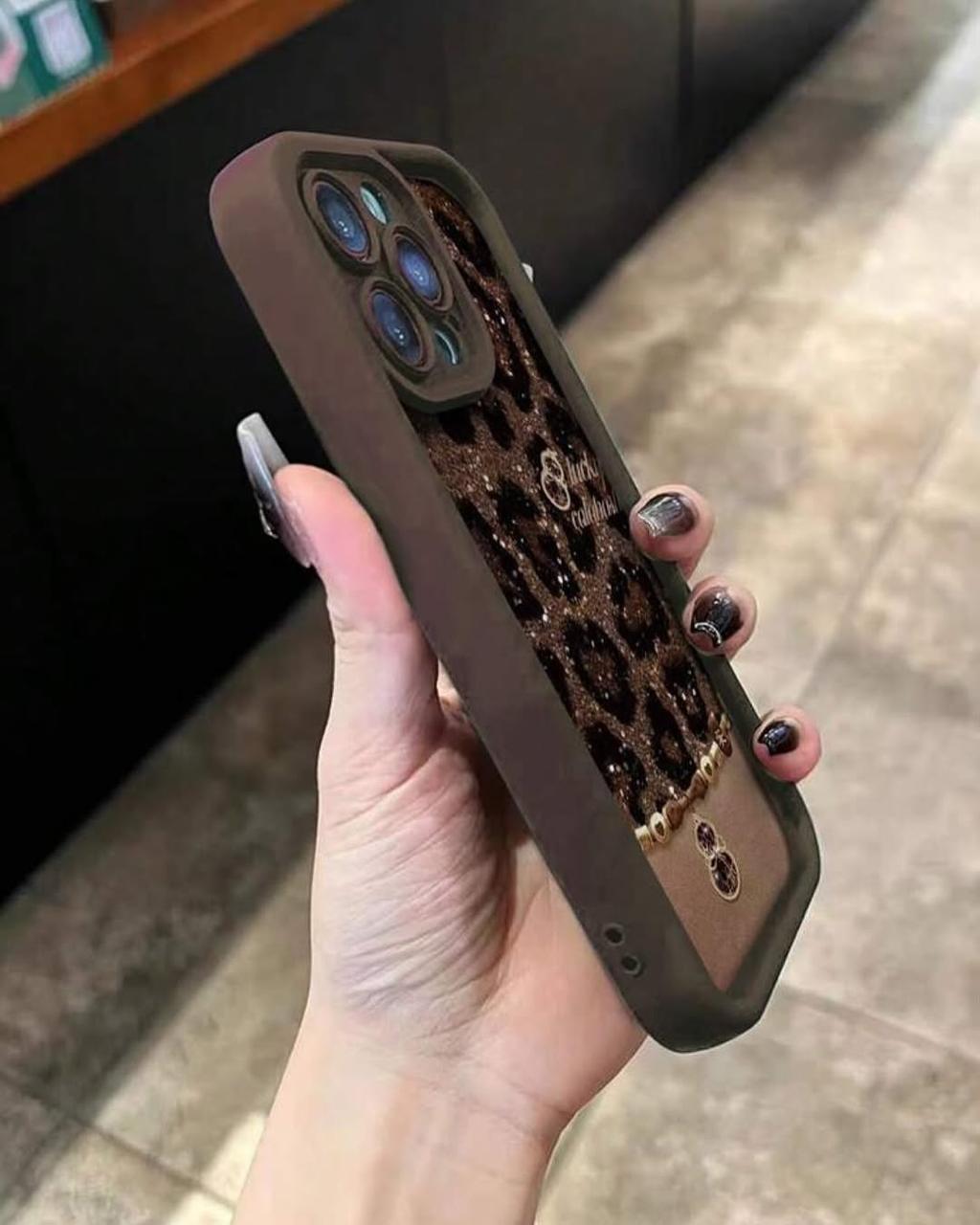 Unleash your inner diva with the WildCharm Case with Camera Protection - iPhone, where bold fashion meets everyday protection. Featuring a glittery leopard print backdrop, soft matte frame, and a luxe charm chain with gold accents, this case is made to stand out and slay. Whether you're brunching, scrolling, or on the go—this case adds fierce glam to every swipe.