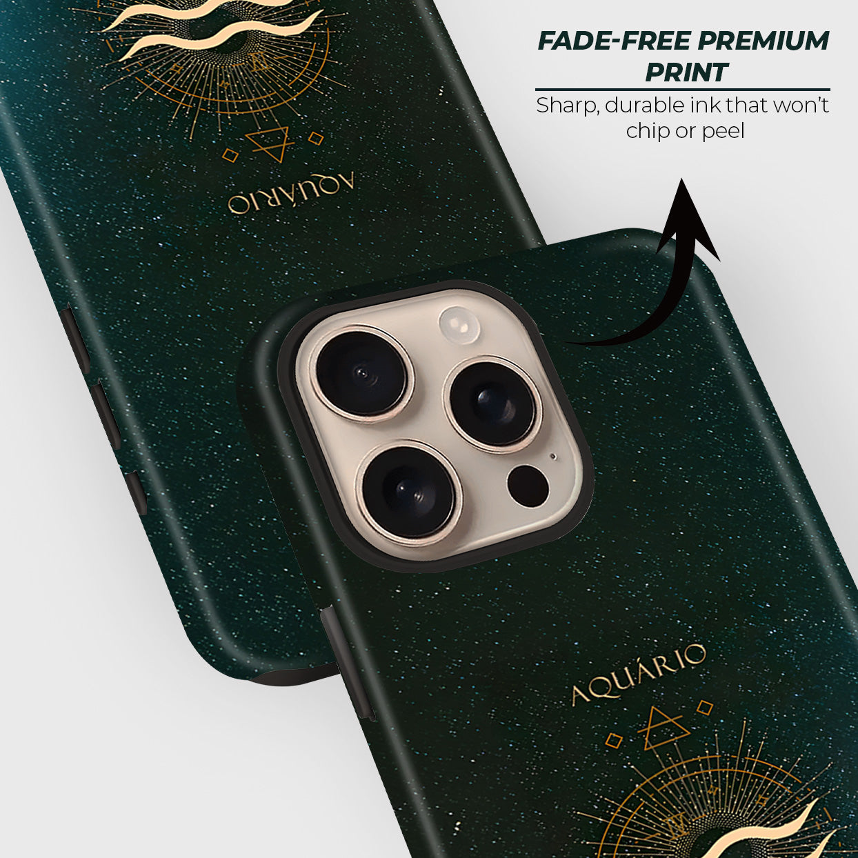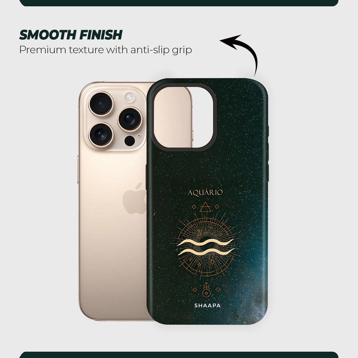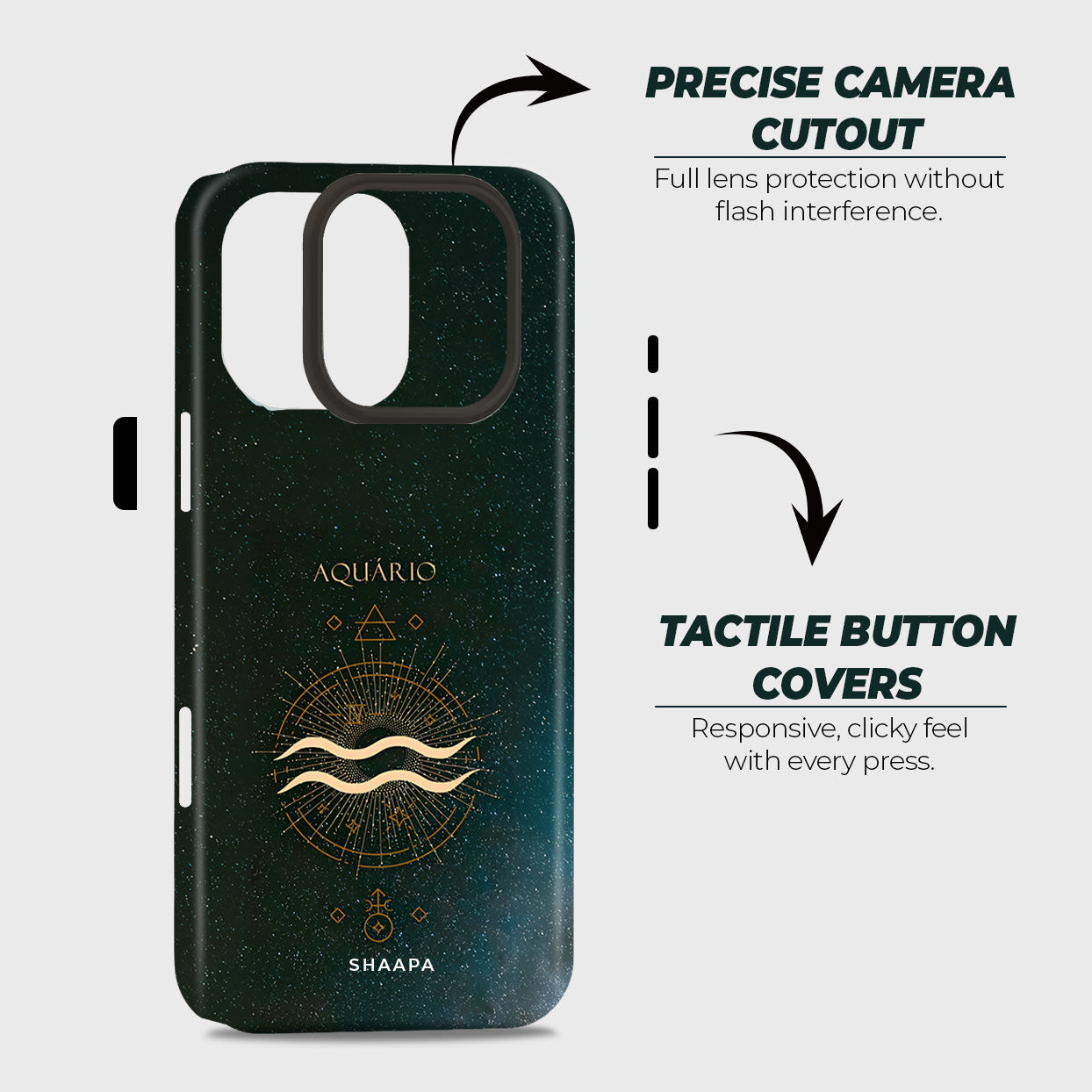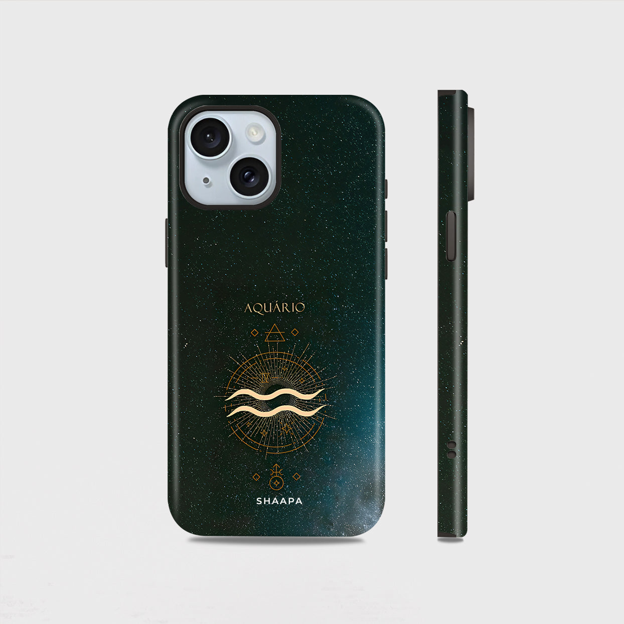 Bold and visionary, the Aquarius - The Free Soul case highlights its iconic water bearer symbol in radiant gold. Accented by geometric details and set against a cosmic sky, this design represents innovation, independence, and forward-thinking spirit, perfectly suited for the trailblazer.