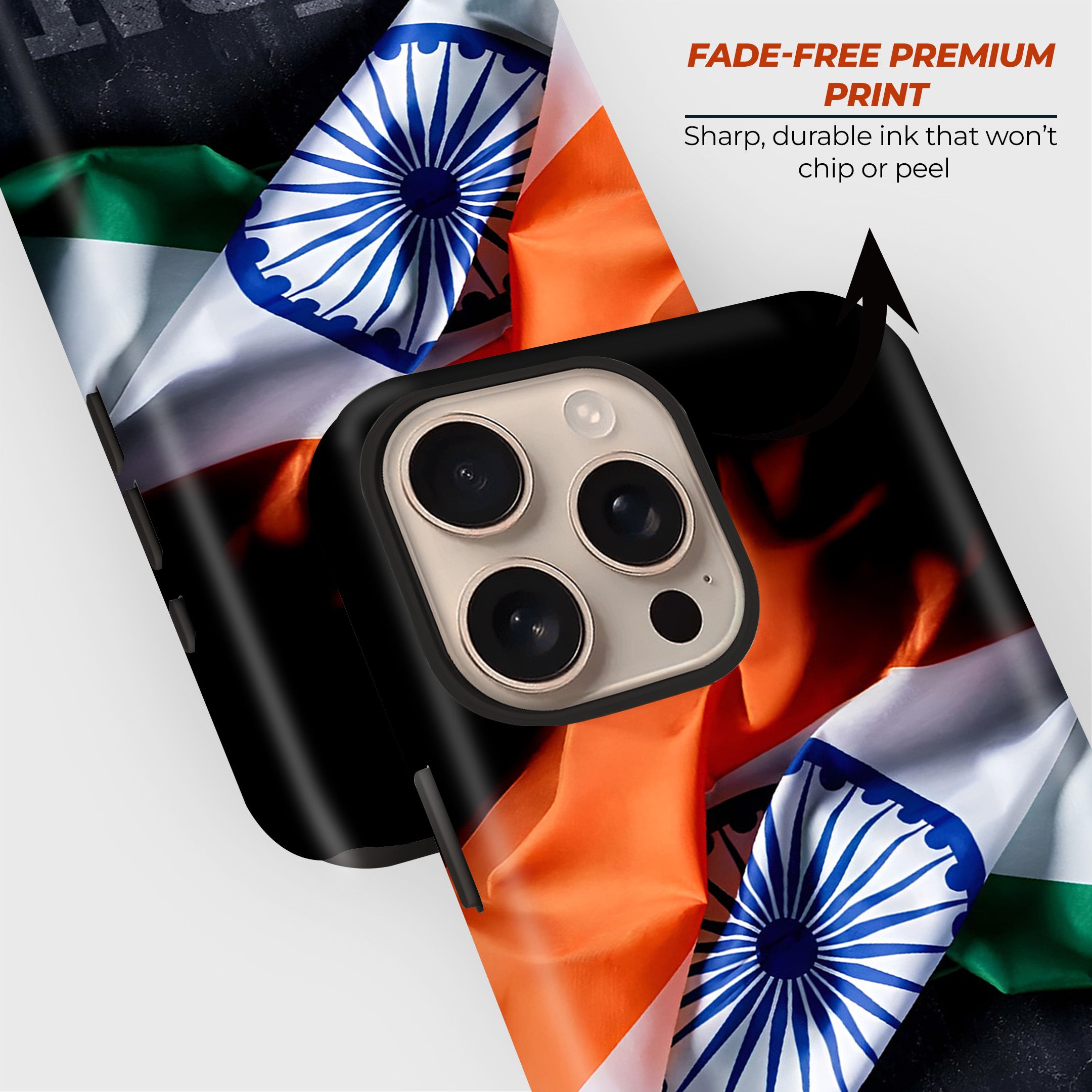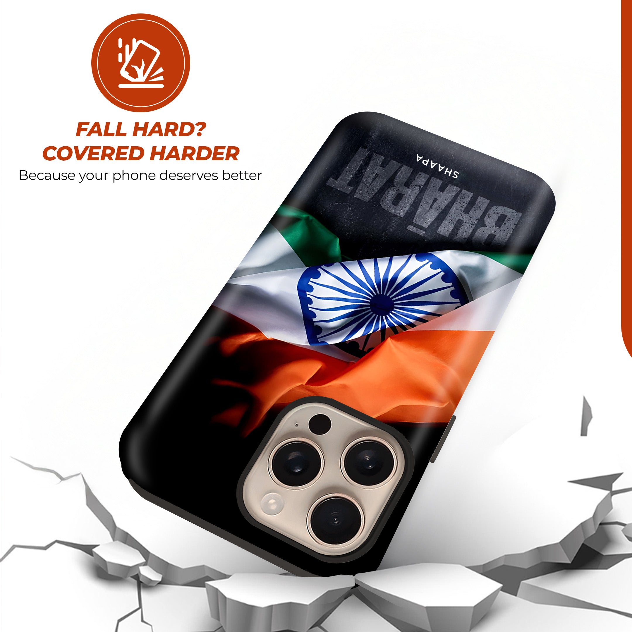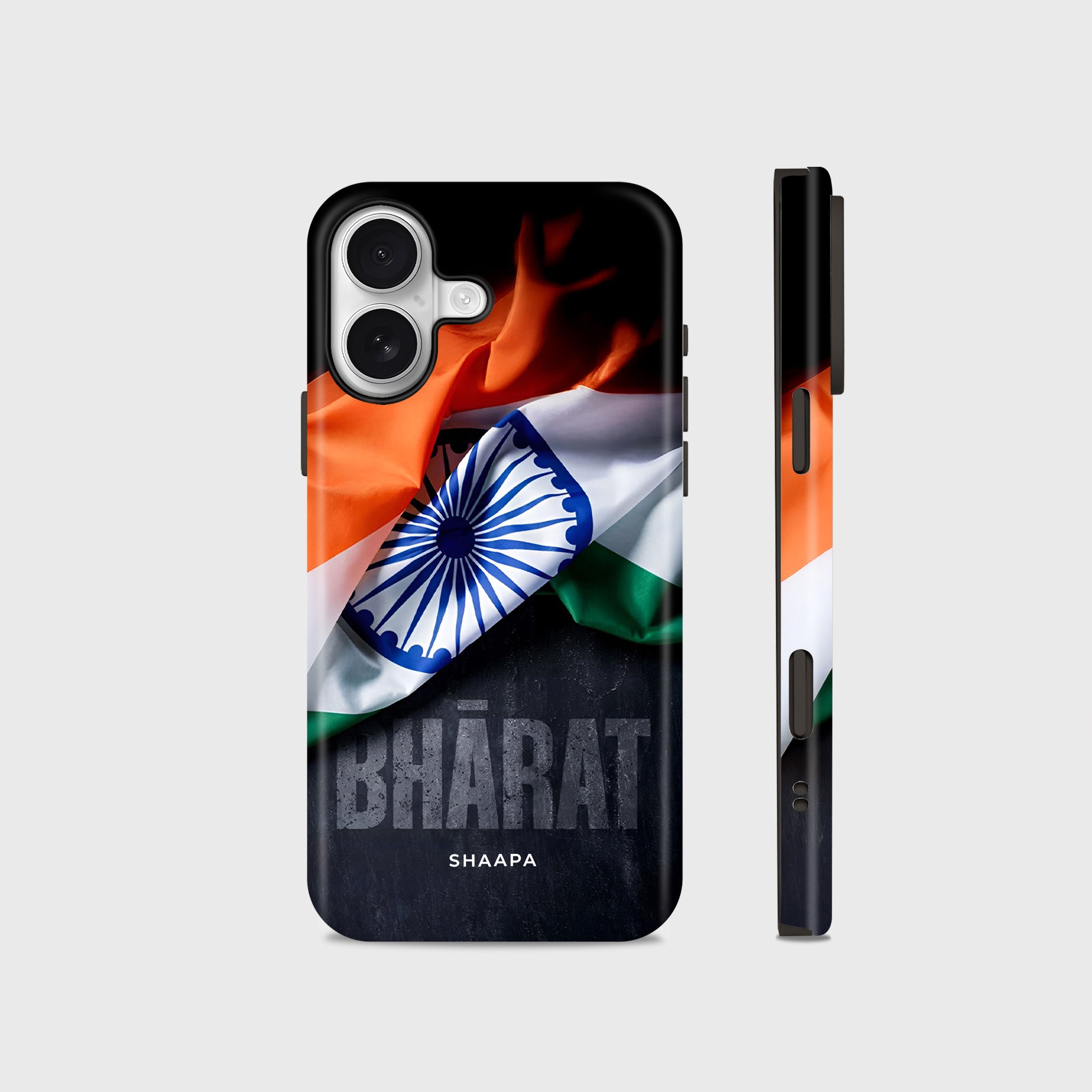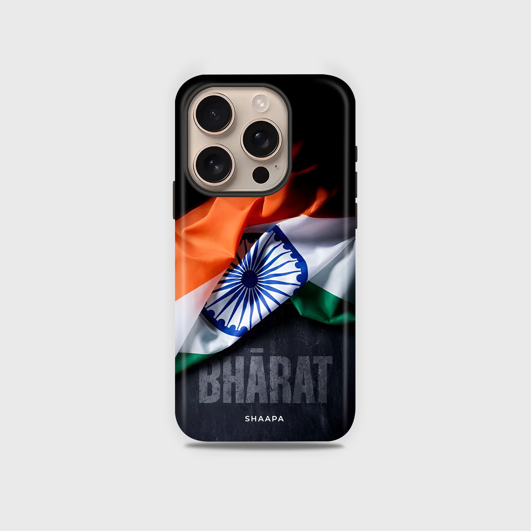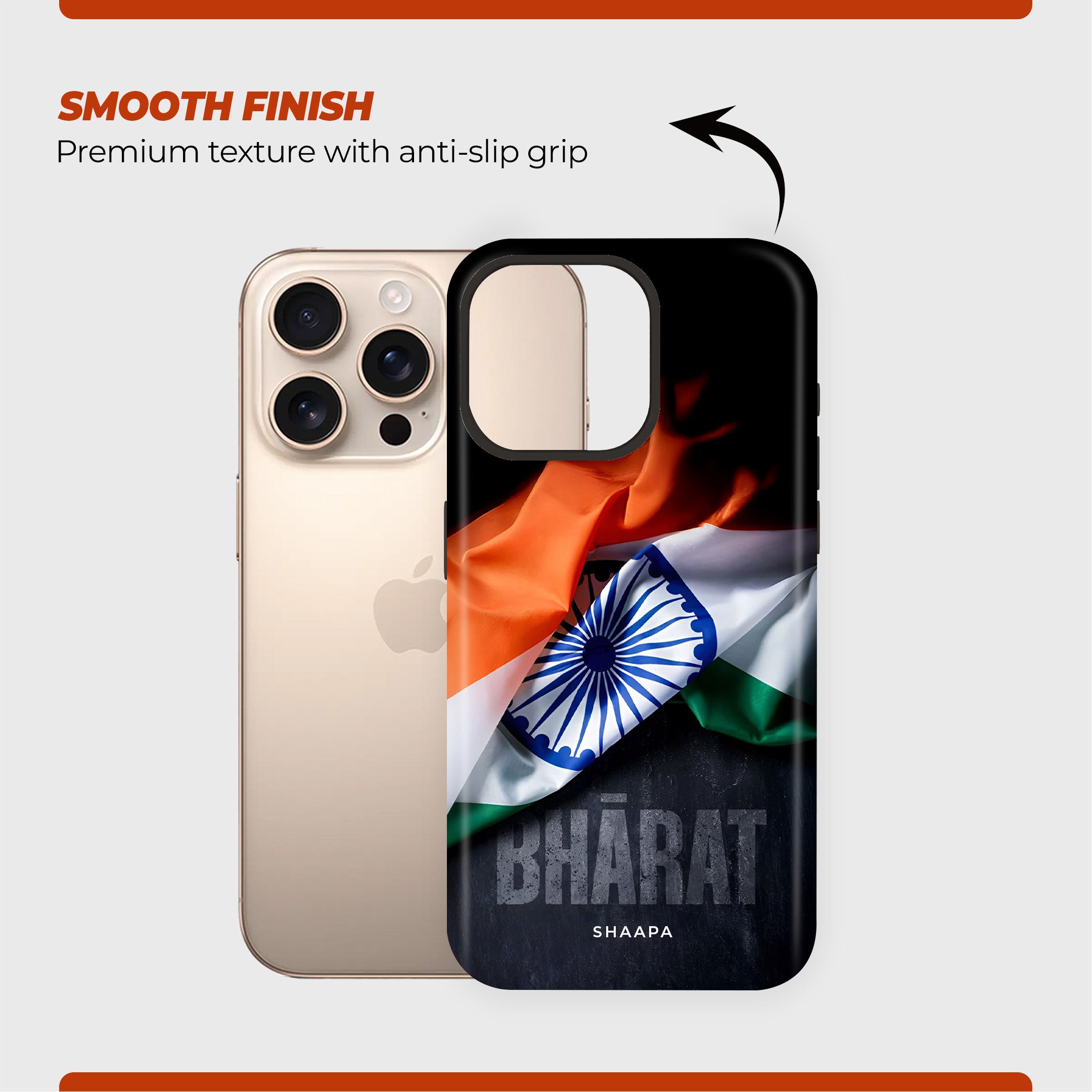 Showcase your patriotism with this elegant Bharat-themed phone case featuring the BHARAT beautifully draped with the proud text engraved below. It’s a perfect blend of national pride and premium protection.