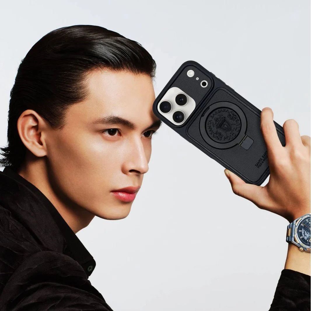 Add a touch of class to your iPhone with the  PoloGrip Luxe Case Crafted with a leather-textured finish and embossed logo, this case blends elite style with everyday practicality. The built-in ring holder offers a secure grip and doubles as a stand—perfect for video calls, reels, or binge-watching on the go.
