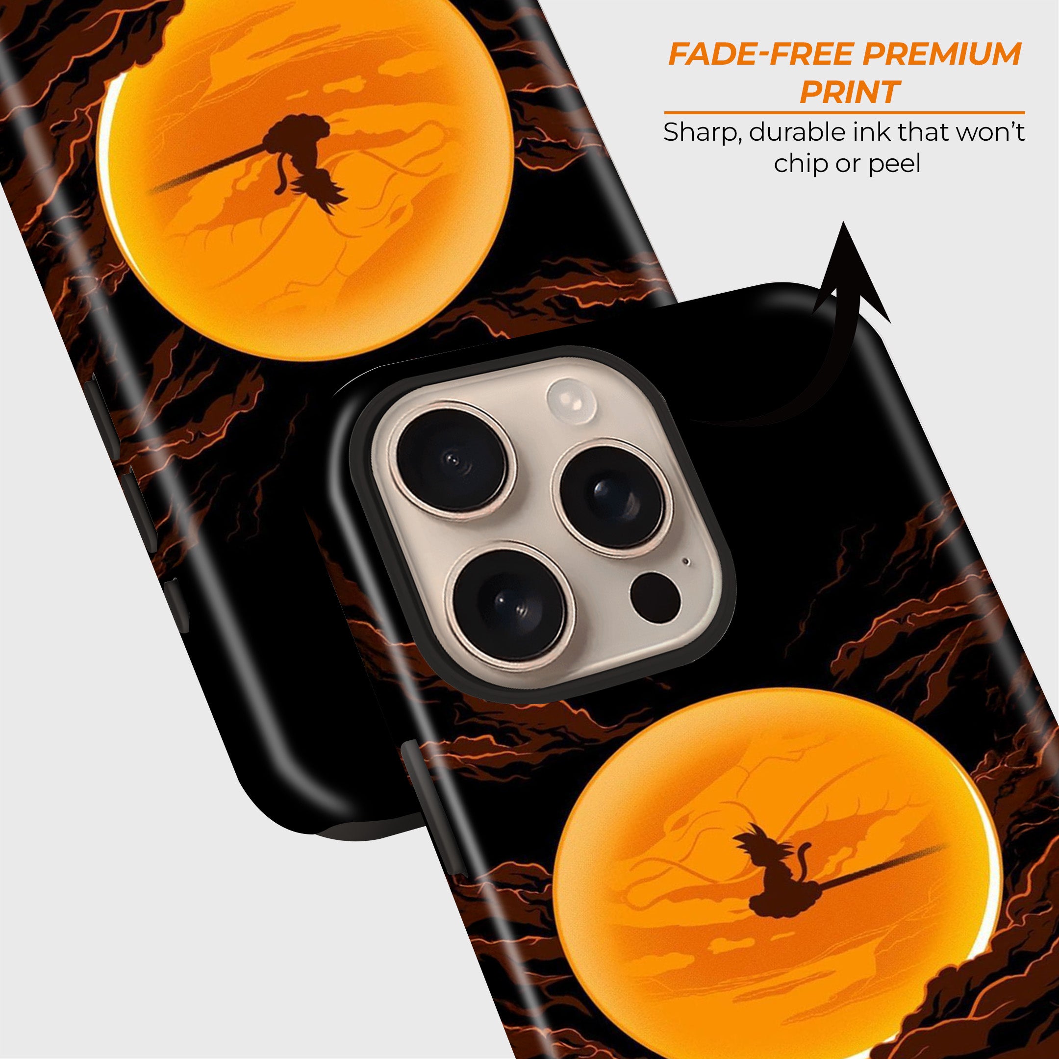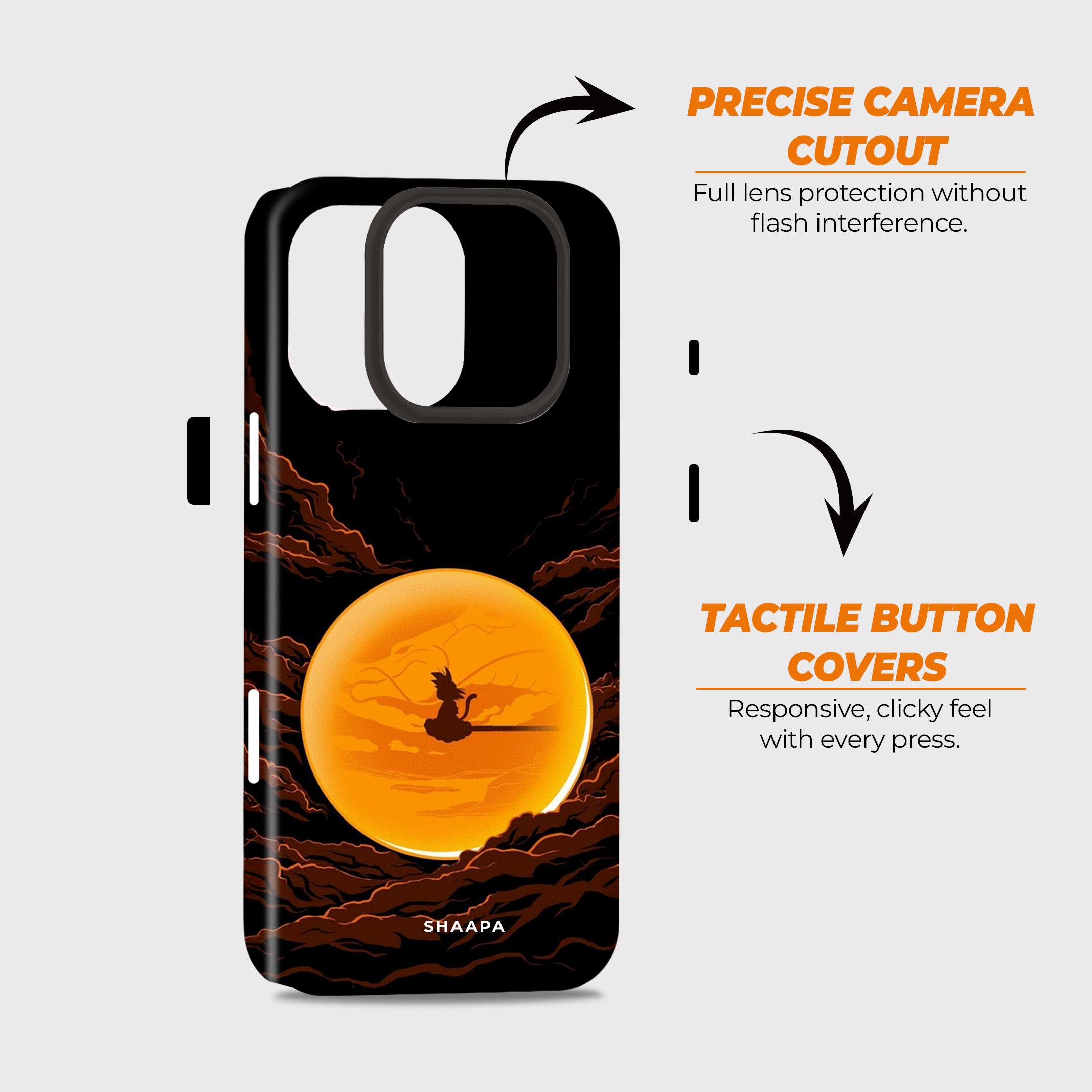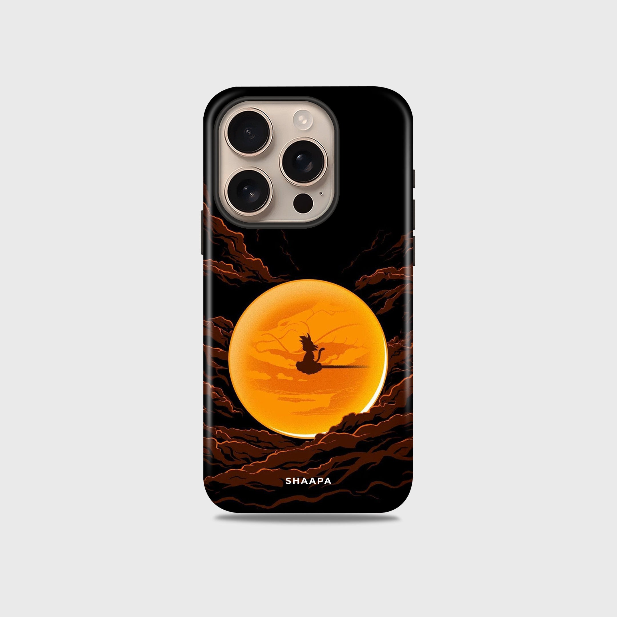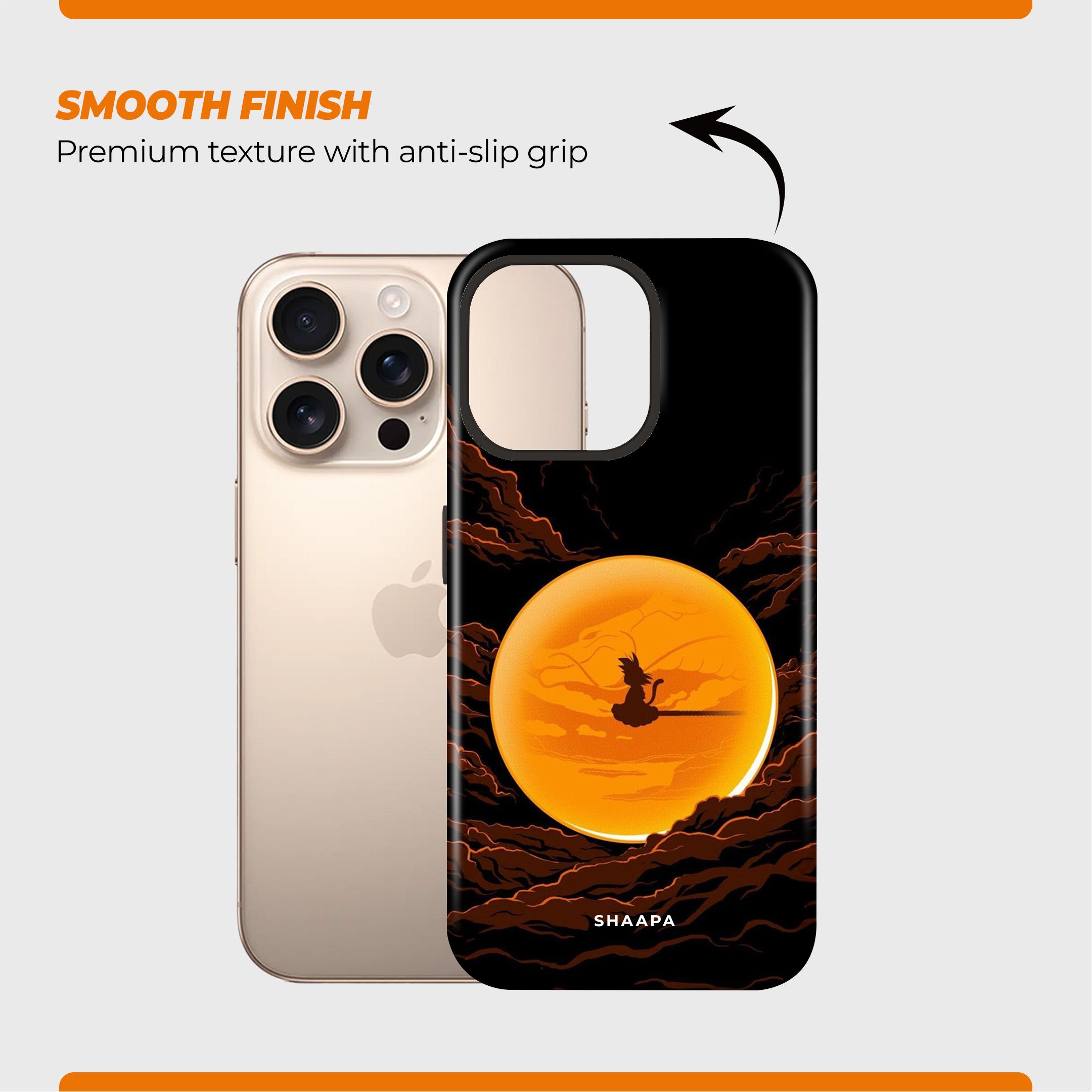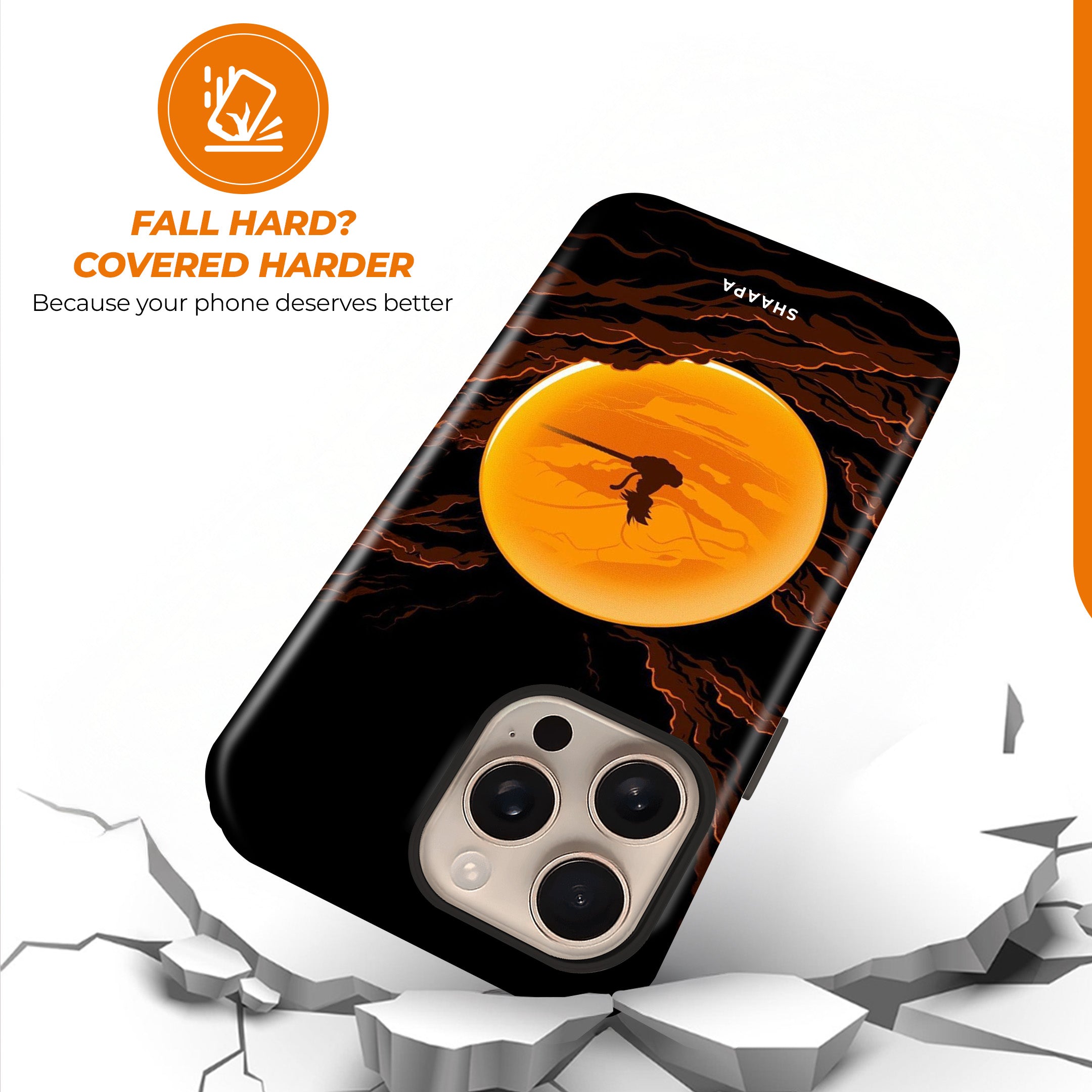 A striking case that features a silhouette flying across a glowing orange sphere, representing energy, adventure, and endless determination. With a dramatic sky design, it’s perfect for fans of epic journeys and limitless dreams.