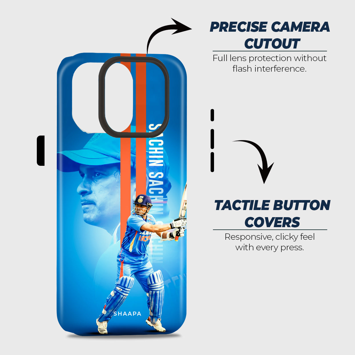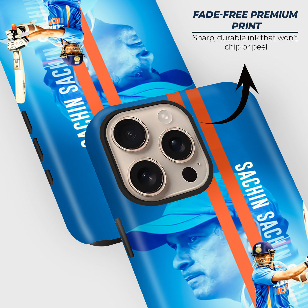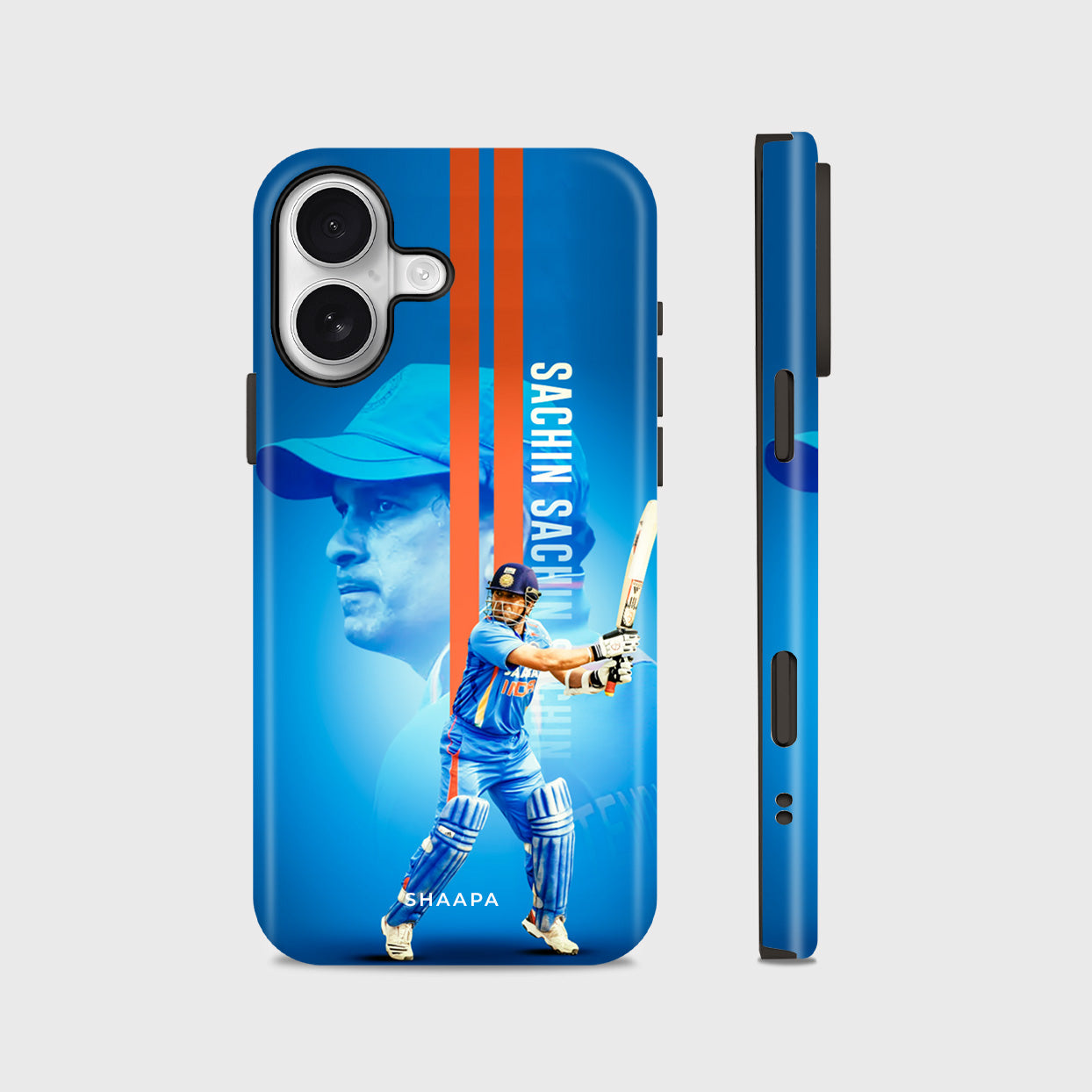 Show your love for cricket with this dynamic phone case featuring the Sachin in action. Designed in vibrant blue with bold graphic elements, it captures the spirit of the game and the unmatched charisma of the cricketing icon. Perfect for fans who want to carry their passion for cricket wherever they go