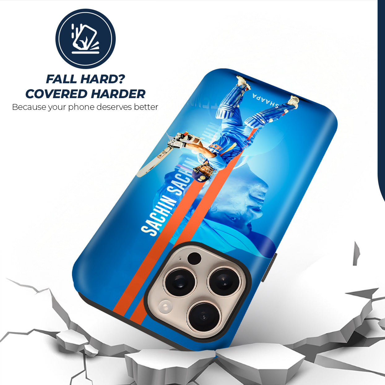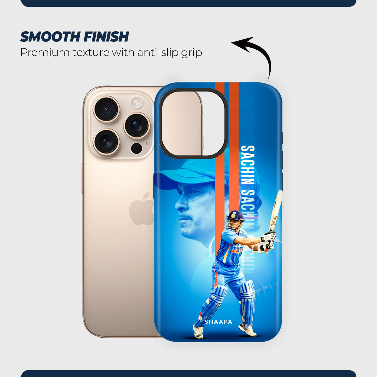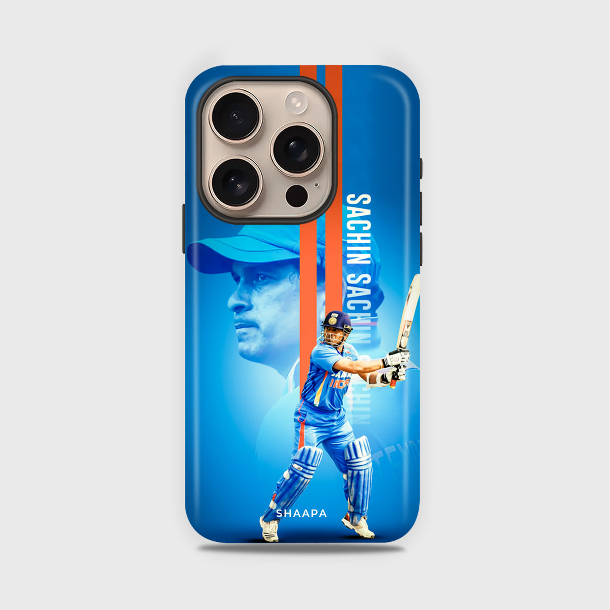 Show your love for cricket with this dynamic phone case featuring the Sachin in action. Designed in vibrant blue with bold graphic elements, it captures the spirit of the game and the unmatched charisma of the cricketing icon. Perfect for fans who want to carry their passion for cricket wherever they go